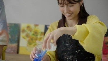 世界でひとつのアート作品を作ることができる「×art|かけるアート」。講師の鈴木先生に作り方を教わりました。お気に入りの色を一生懸命選びながらアート制作に取り組みました。アート制作初体験の有村さん、どんな作品ができたのでしょうか!?