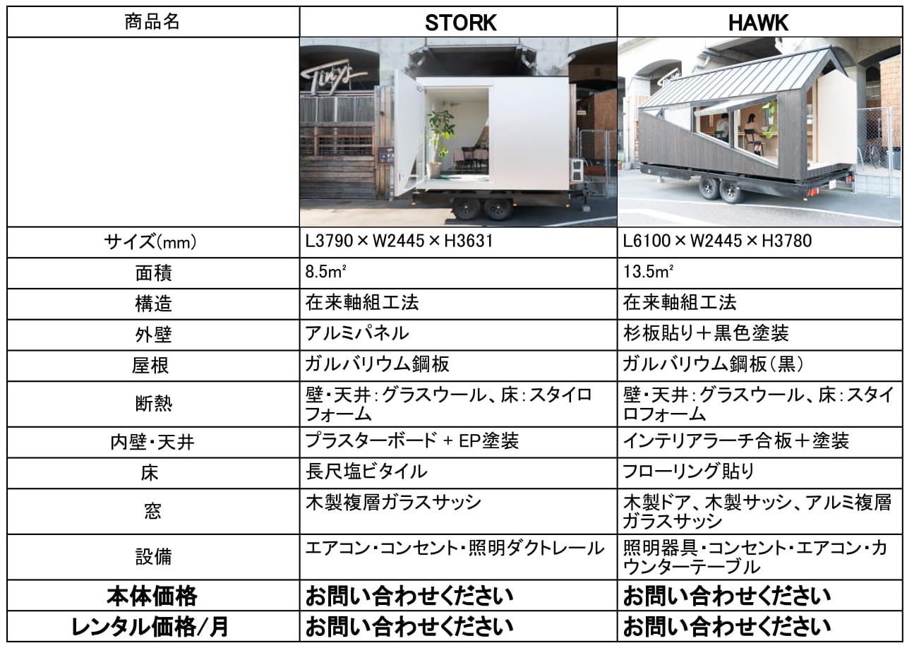 YADOKARI株式会社(神奈川県横浜市、代表取締役CEO さわだいっせい・代表取締役COO ウエスギセイタ、以下YADOKARI)は、オリジナルタイニーハウス、12ftサイズの「STORK」と20ftサイズ「HAWK」のレンタル・販売を2021年11月18日(木)より、ヴィンテージバン「TOYORA Town Ace 1978」と「CHEVROLET Chevy Van 1967」のレンタルを2021年12月中旬より自社運営サイトにて開始致します。