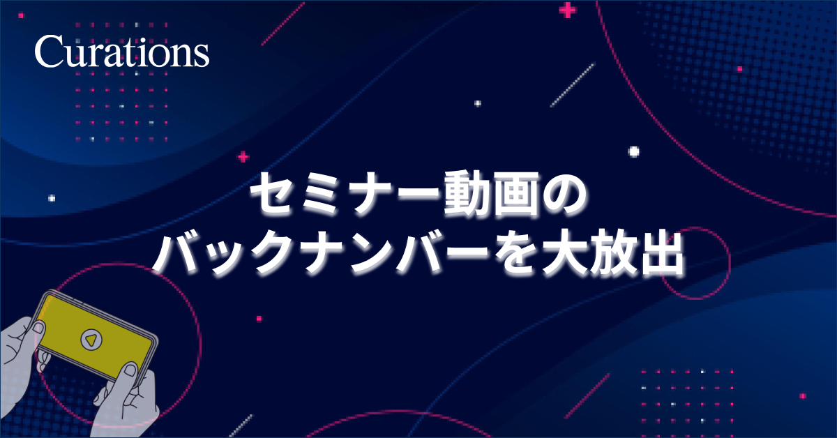顧客企業のビジネス変革を成功に導くキュレーションズ株式会社(本社:東京都渋谷区、代表取締役社長:根本隆之、以下当社)は、セミナー動画バックナンバーを視聴できるページをリリースしたことをお知らせします。