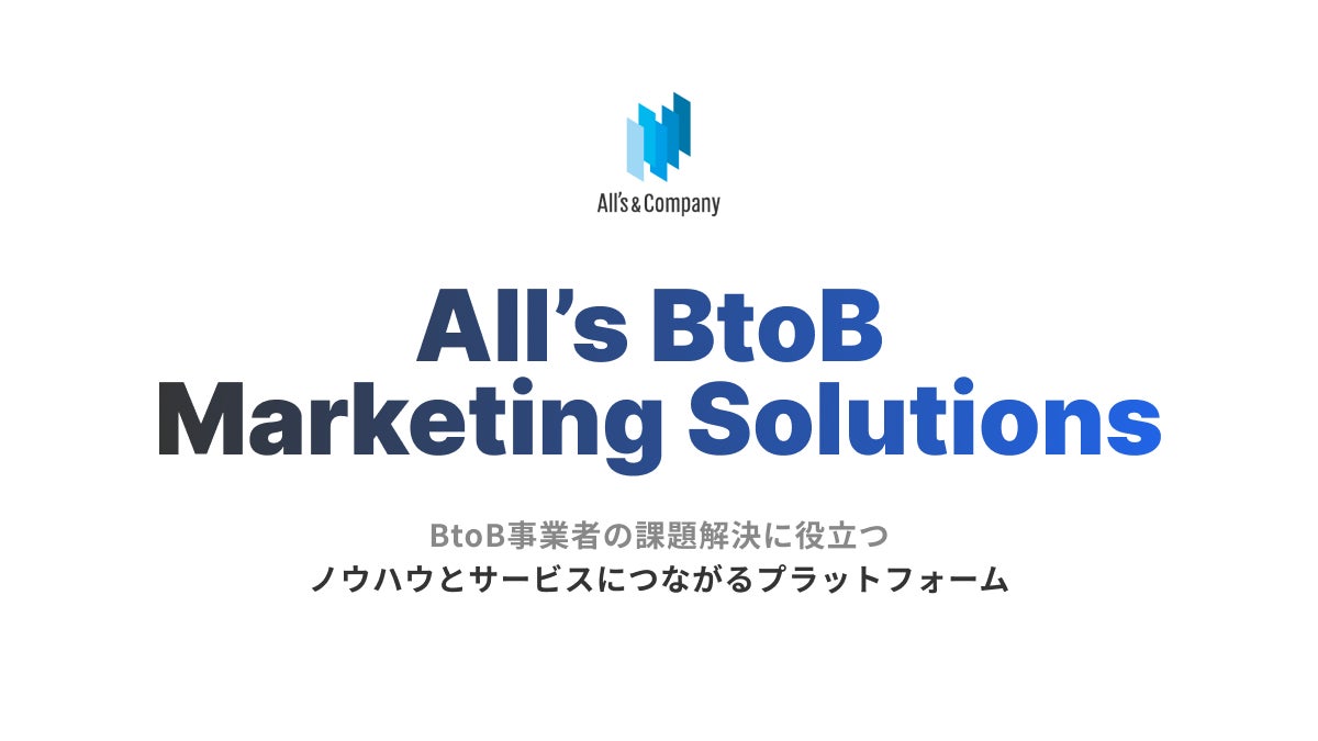 『All's BtoB Marketing Solutions』は、BtoB事業者の課題解決に役立つノウハウとサービスにつながるプラットフォームです。BtoBマーケターが直面する大小あらゆる悩みに対して解決できる場としての役割を目指しています。