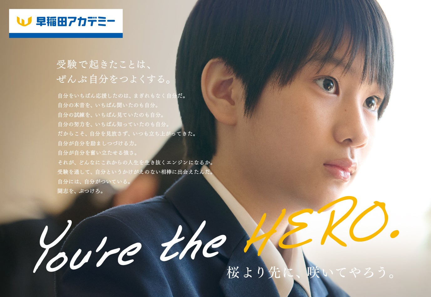 進学塾『早稲田アカデミー』「桜より先に、咲いてやろう。」すべての受験生にエールを送る―― 受験生応援シリーズ広告「You‘re the HERO.」2025年版新グラフィックを本日公開