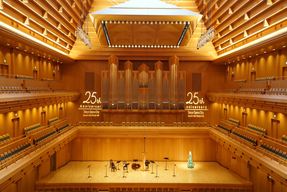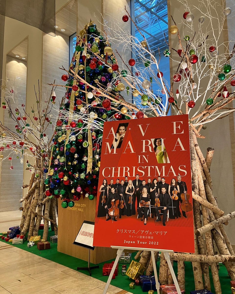 東京オペラシティ コンサートホールのロビーでは、假屋崎省吾氏プロデュースのクリスマスツリーがお出迎え!格調高く美しいホールも気分を盛り上げます。