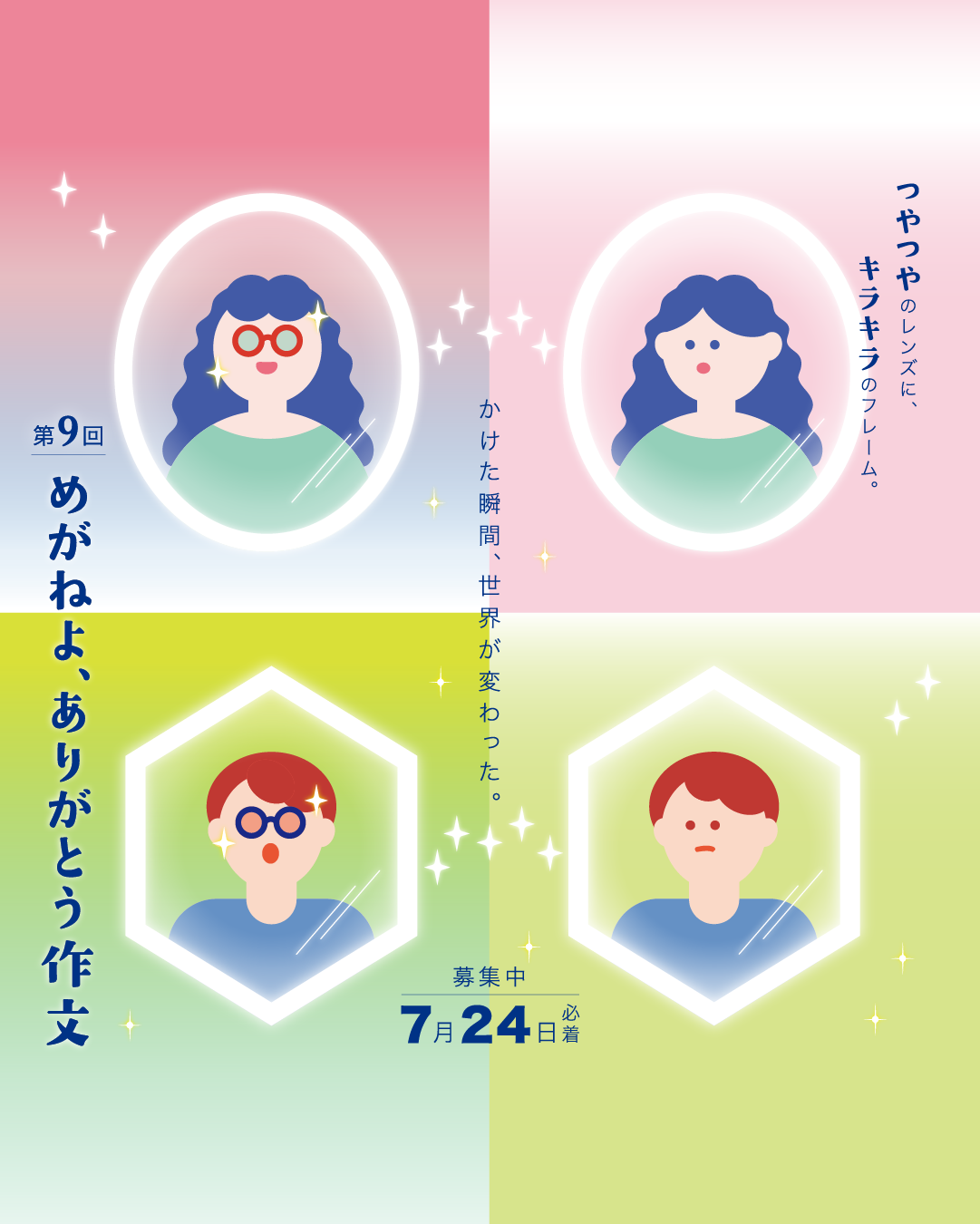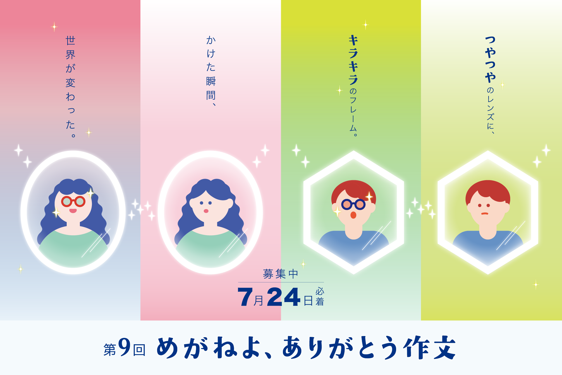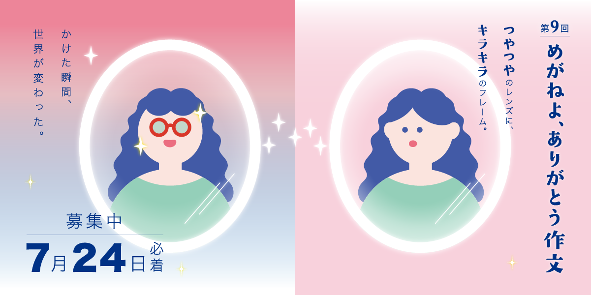 めがねにまつわるエピソードや、日頃お世話になっているめがねへの感謝の気持ちを綴った作文を広く募集します。受賞作品は8月下旬にめがねフェス公式WEBサイトにて発表予定です。