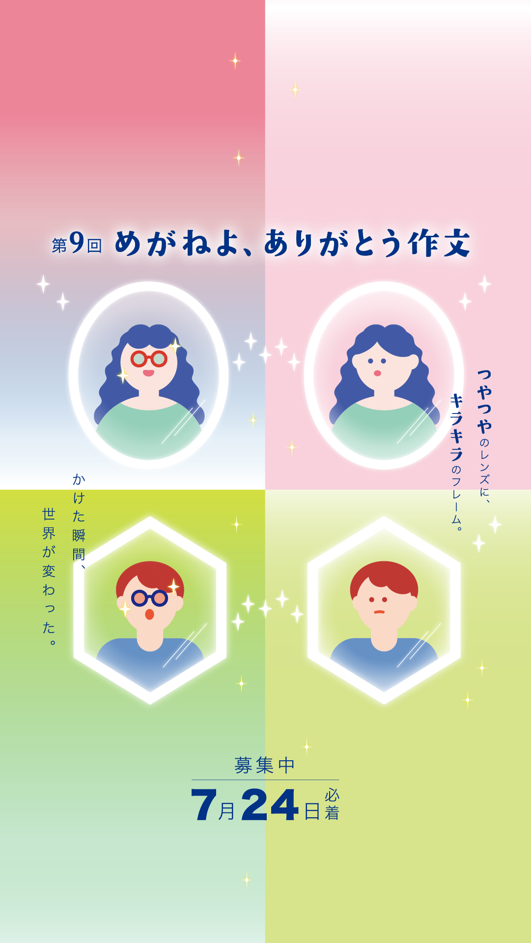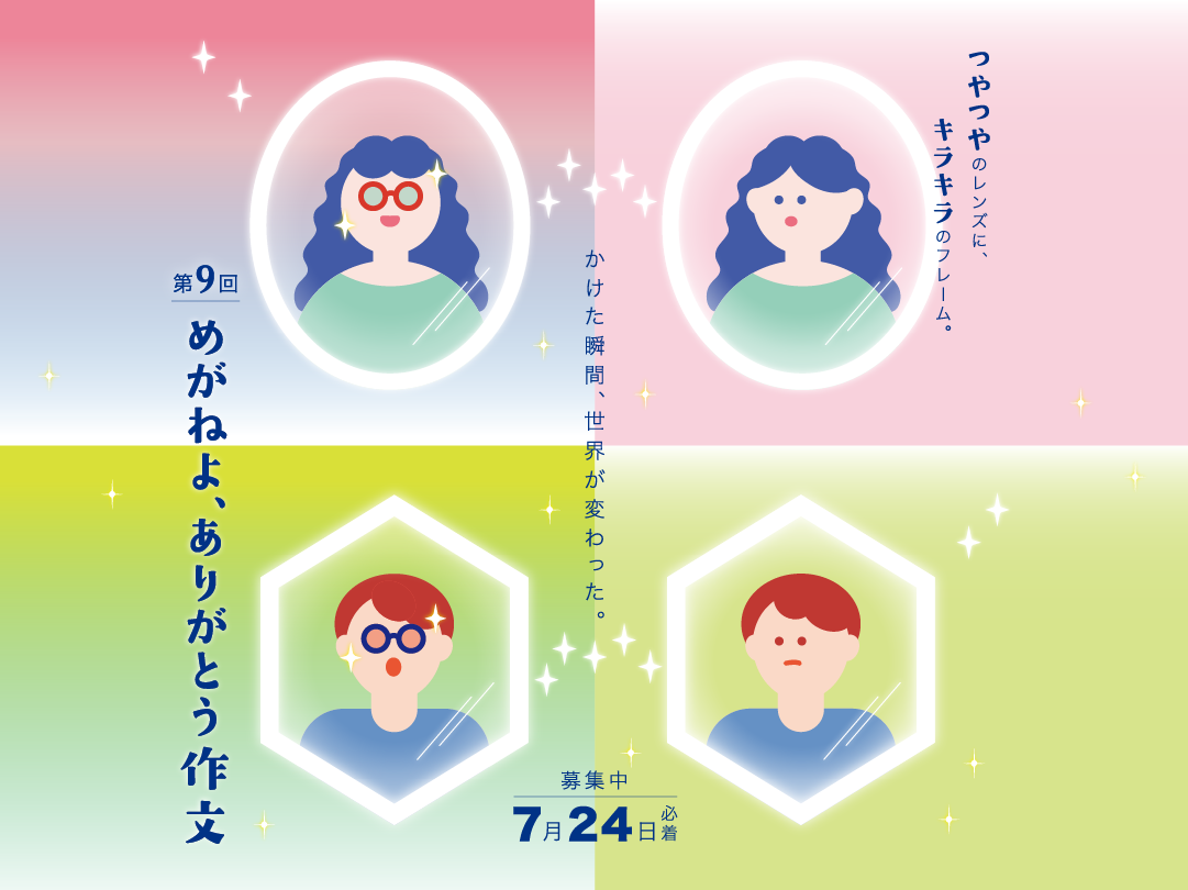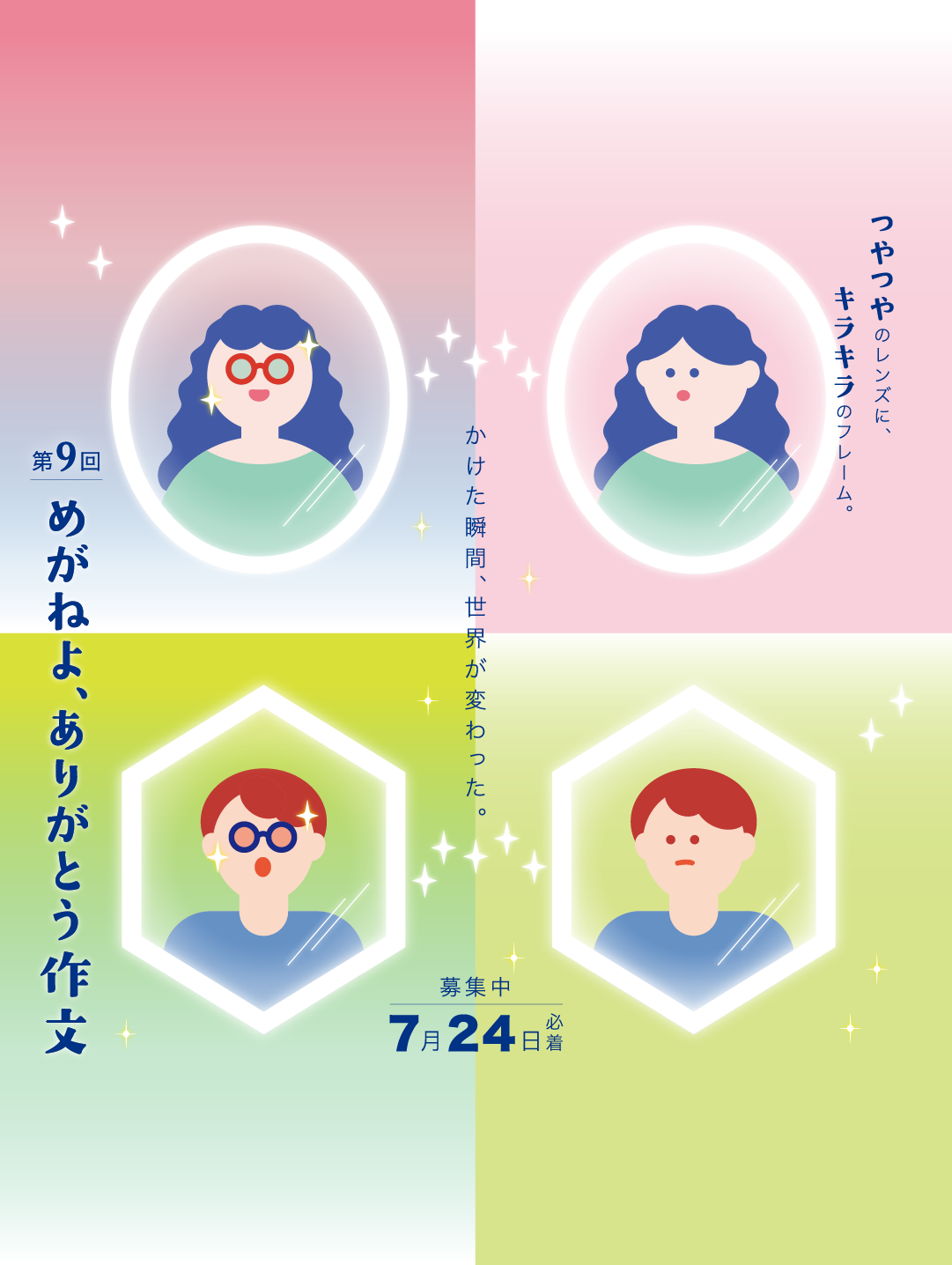 めがねにまつわるエピソードや、日頃お世話になっているめがねへの感謝の気持ちを綴った作文を広く募集します。受賞作品は8月下旬にめがねフェス公式WEBサイトにて発表予定です。