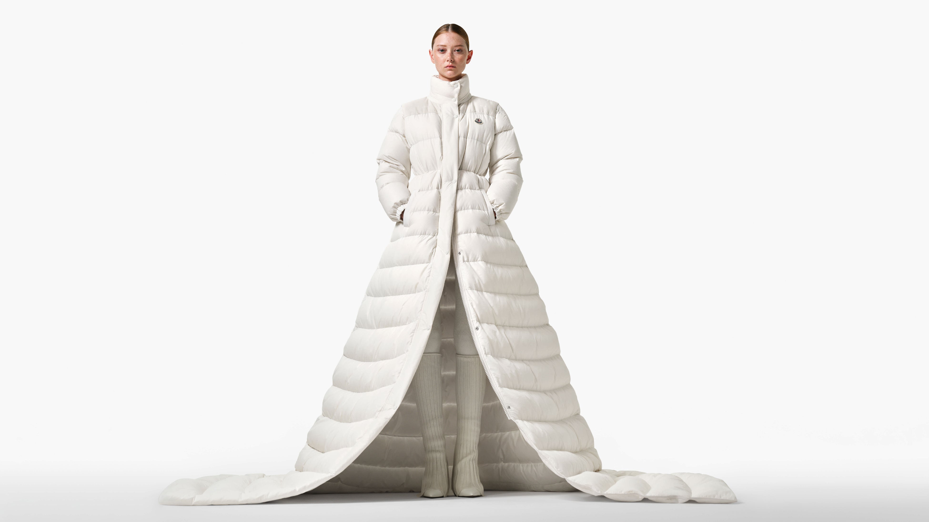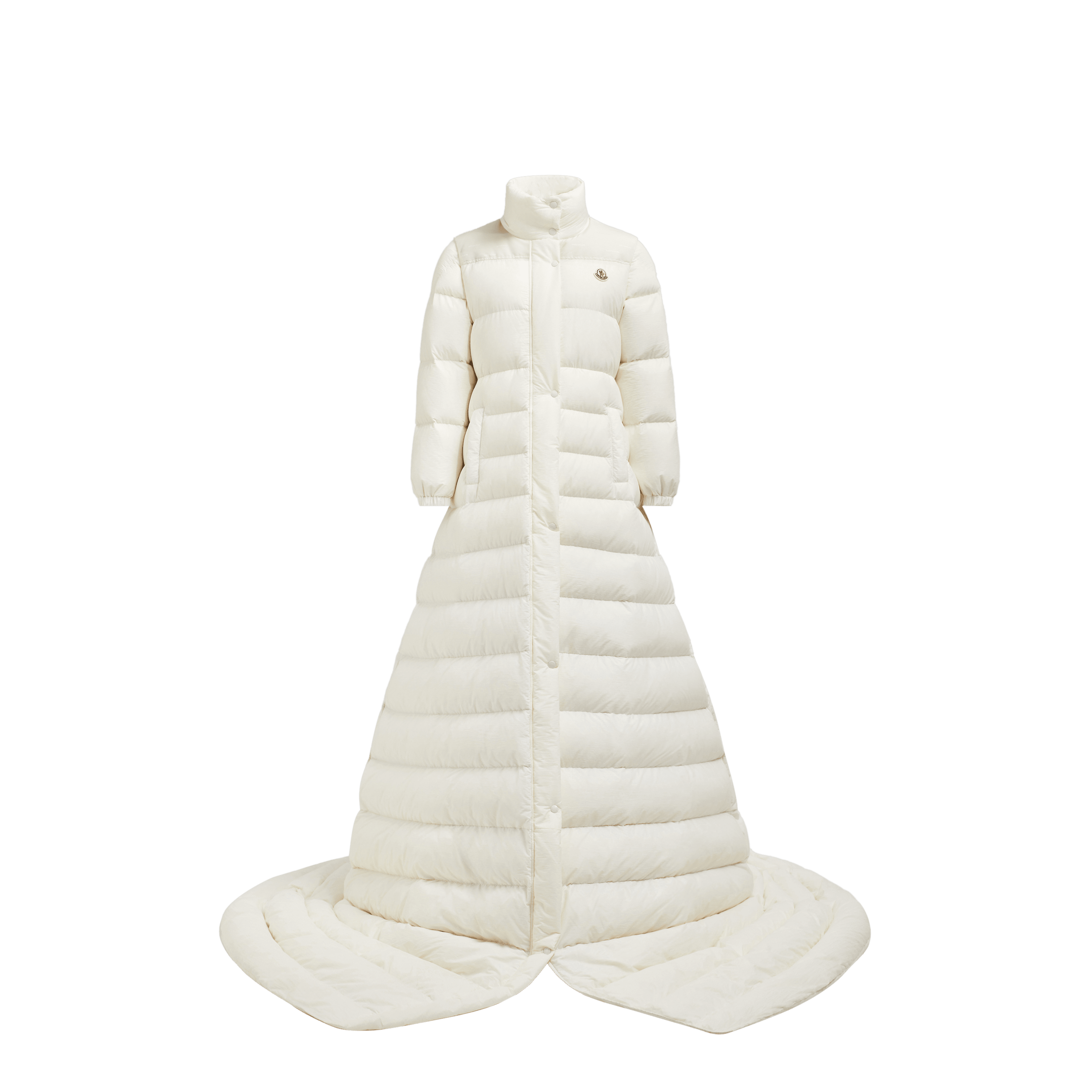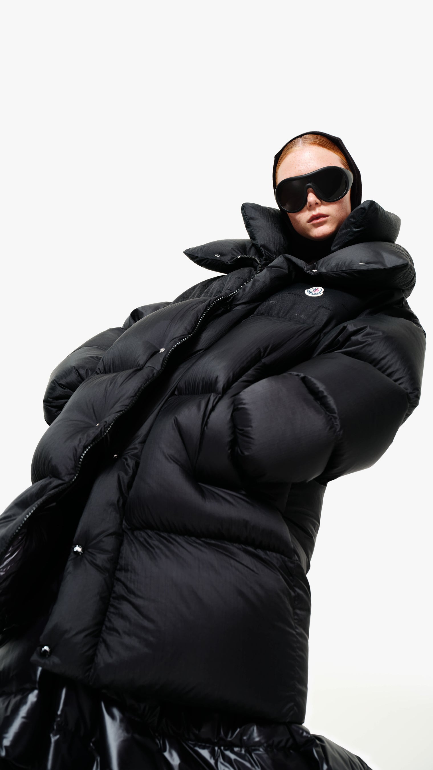 ヴェローネ オーパスは、ドラマチックなフルレングスで、実用的な冬のパファーを新たな高みへと昇華させました。ブラックとホワイトのモノクロームでデザインされたこのスタイルは、ドレスのようなグラマラスなインパクトとモンクレールのシグネチャーである機能性を融合しています。