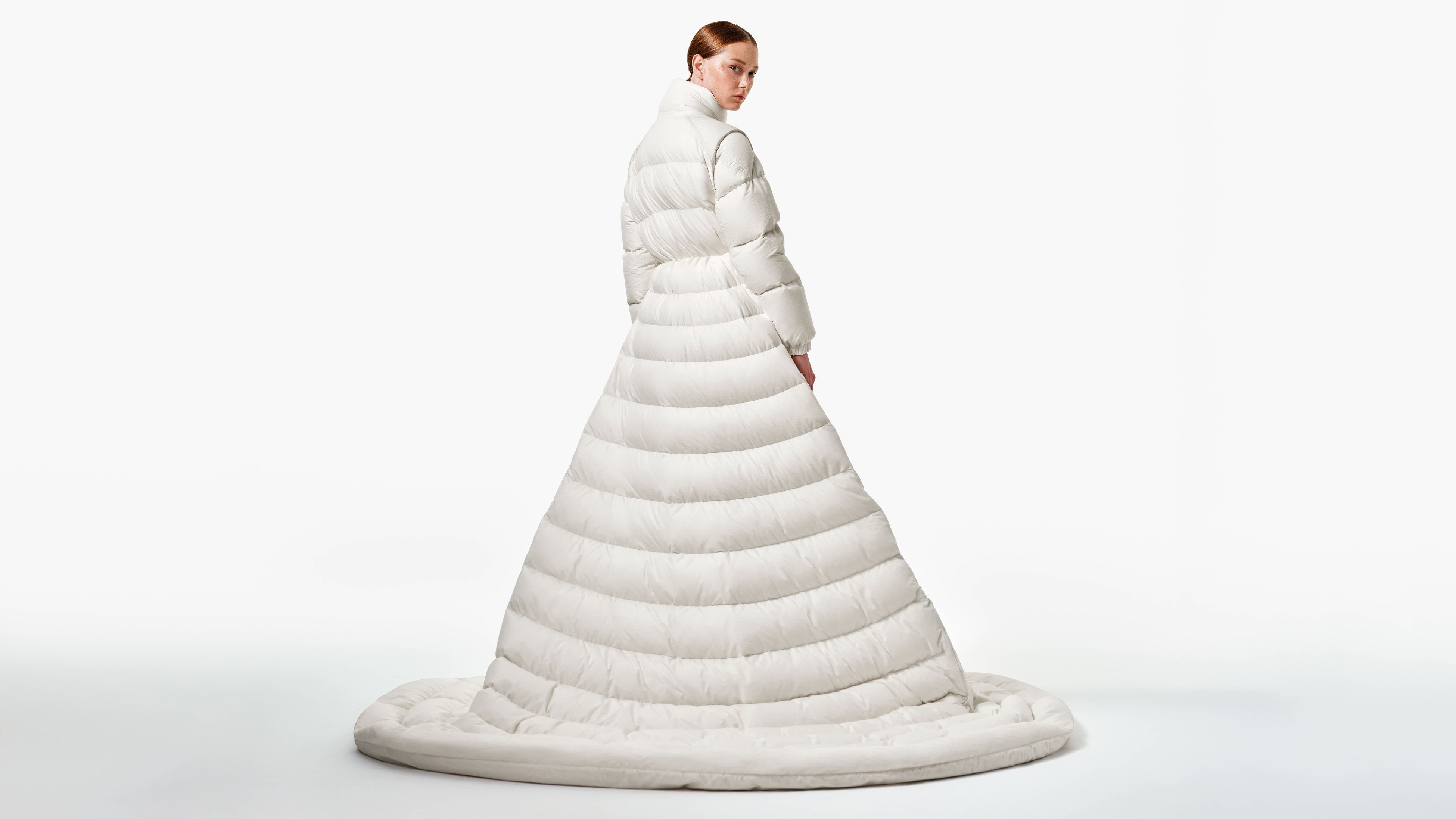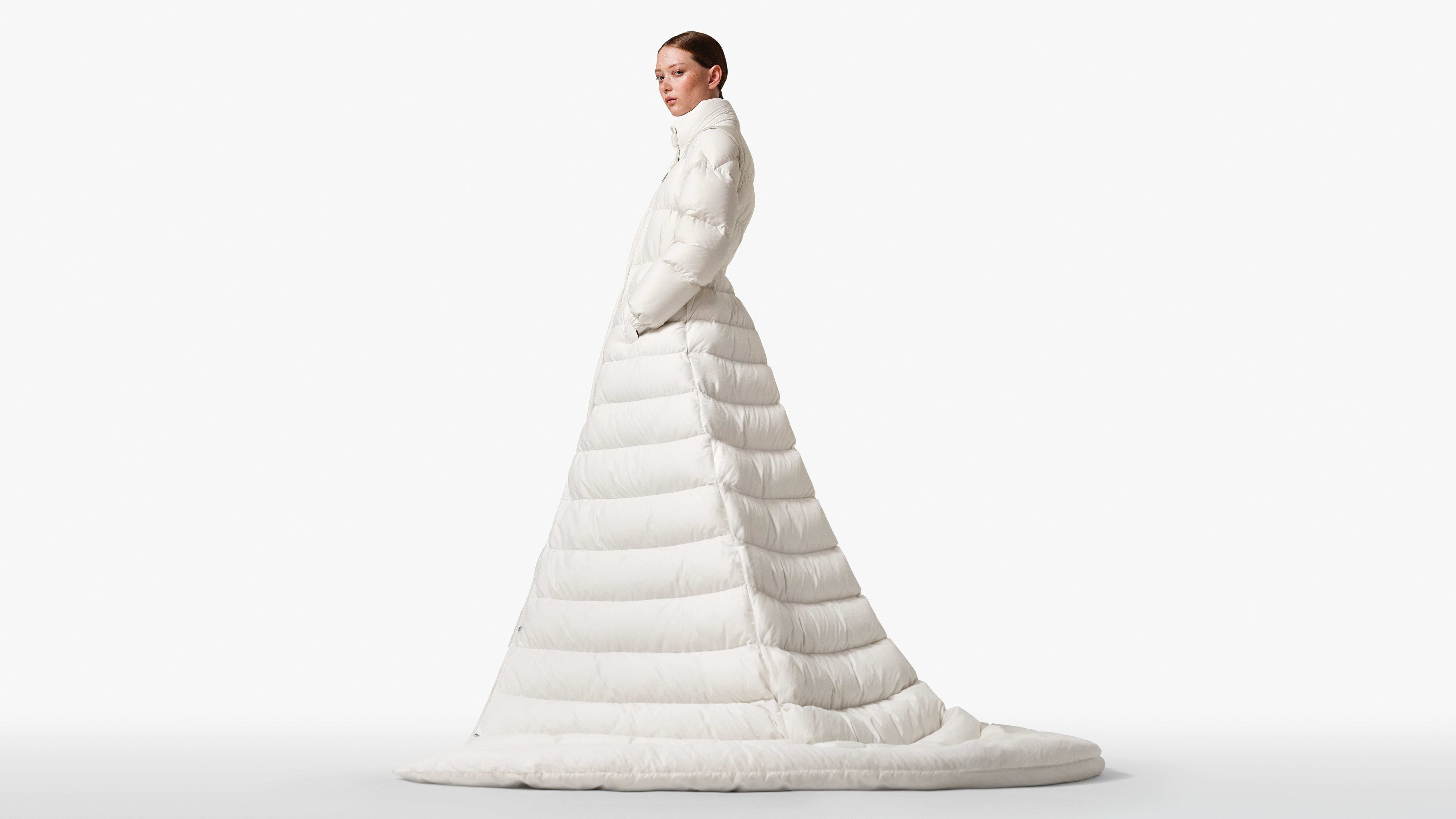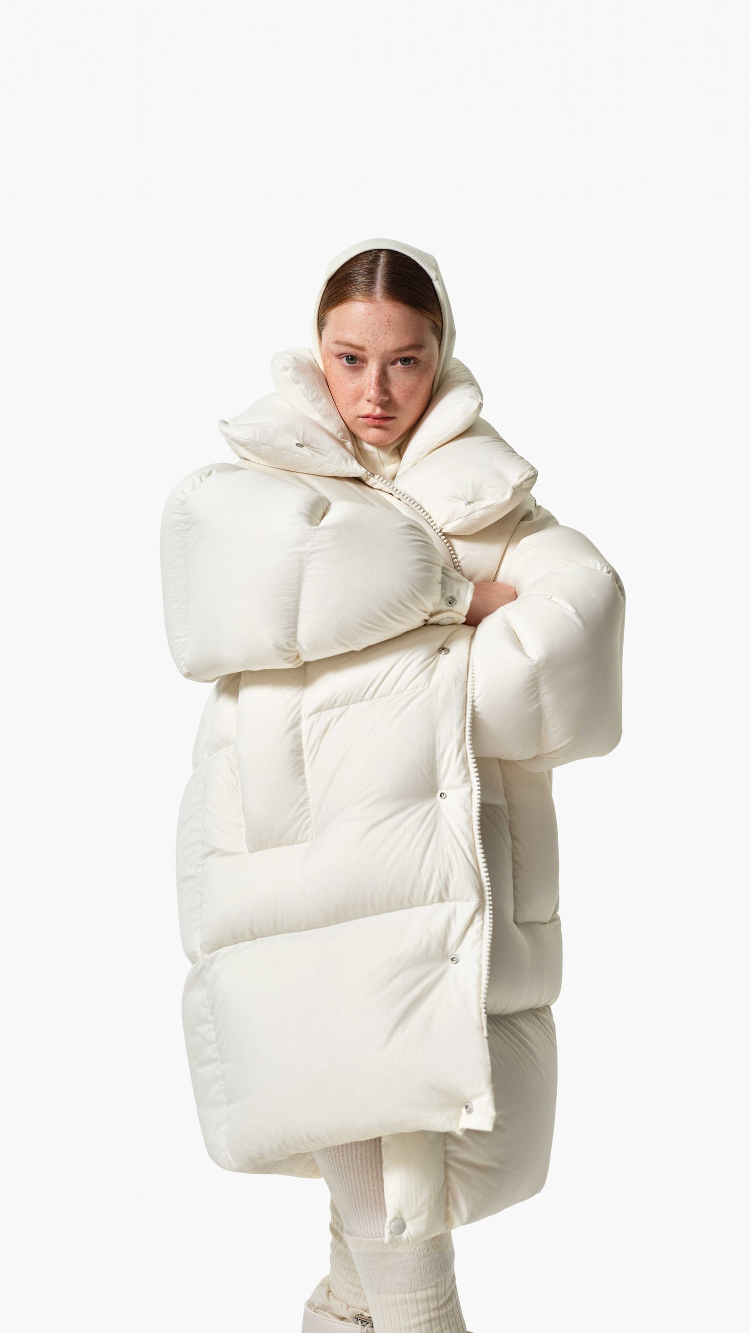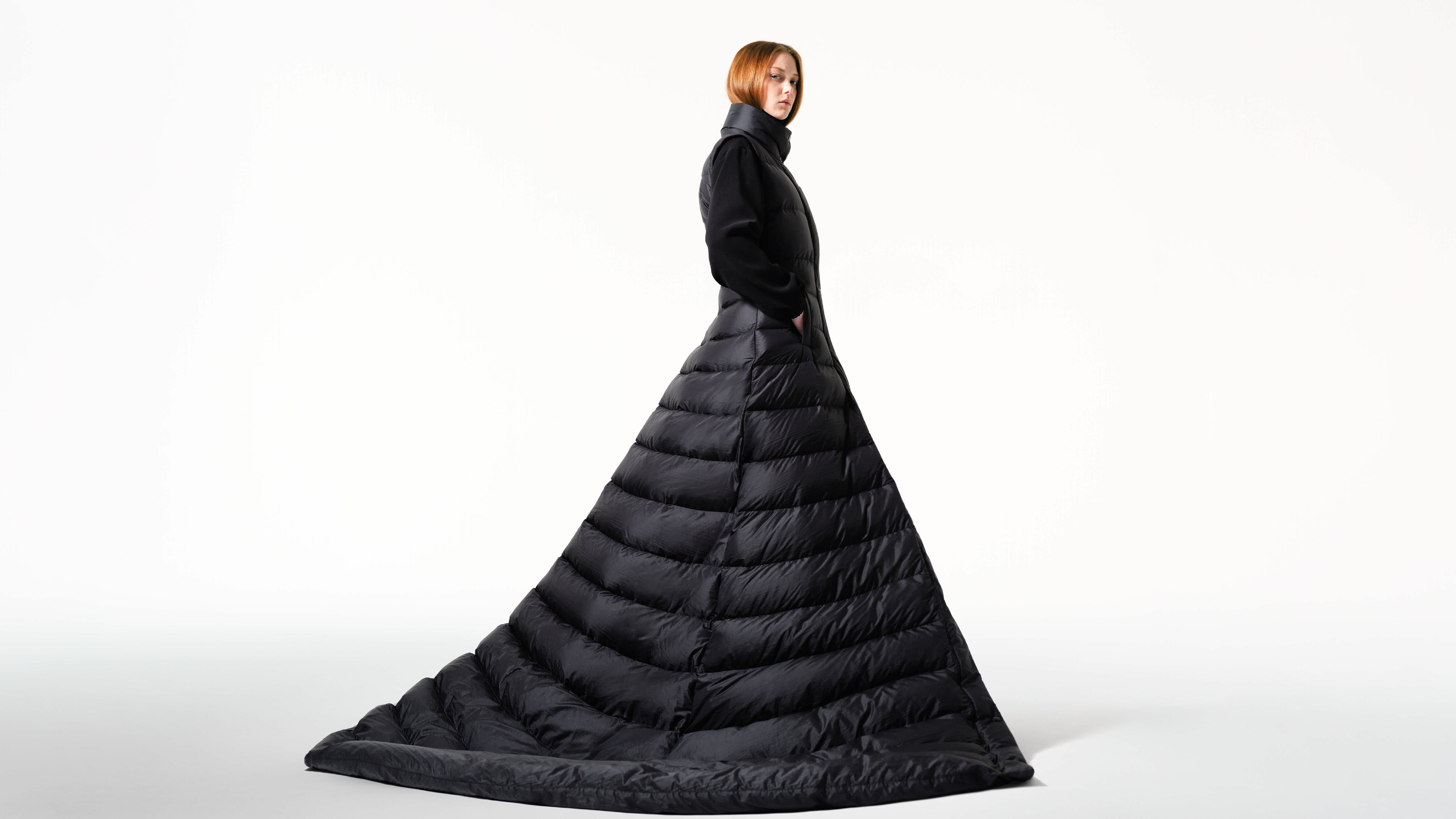 ヴェローネ オーパスは、ドラマチックなフルレングスで、実用的な冬のパファーを新たな高みへと昇華させました。ブラックとホワイトのモノクロームでデザインされたこのスタイルは、ドレスのようなグラマラスなインパクトとモンクレールのシグネチャーである機能性を融合しています。