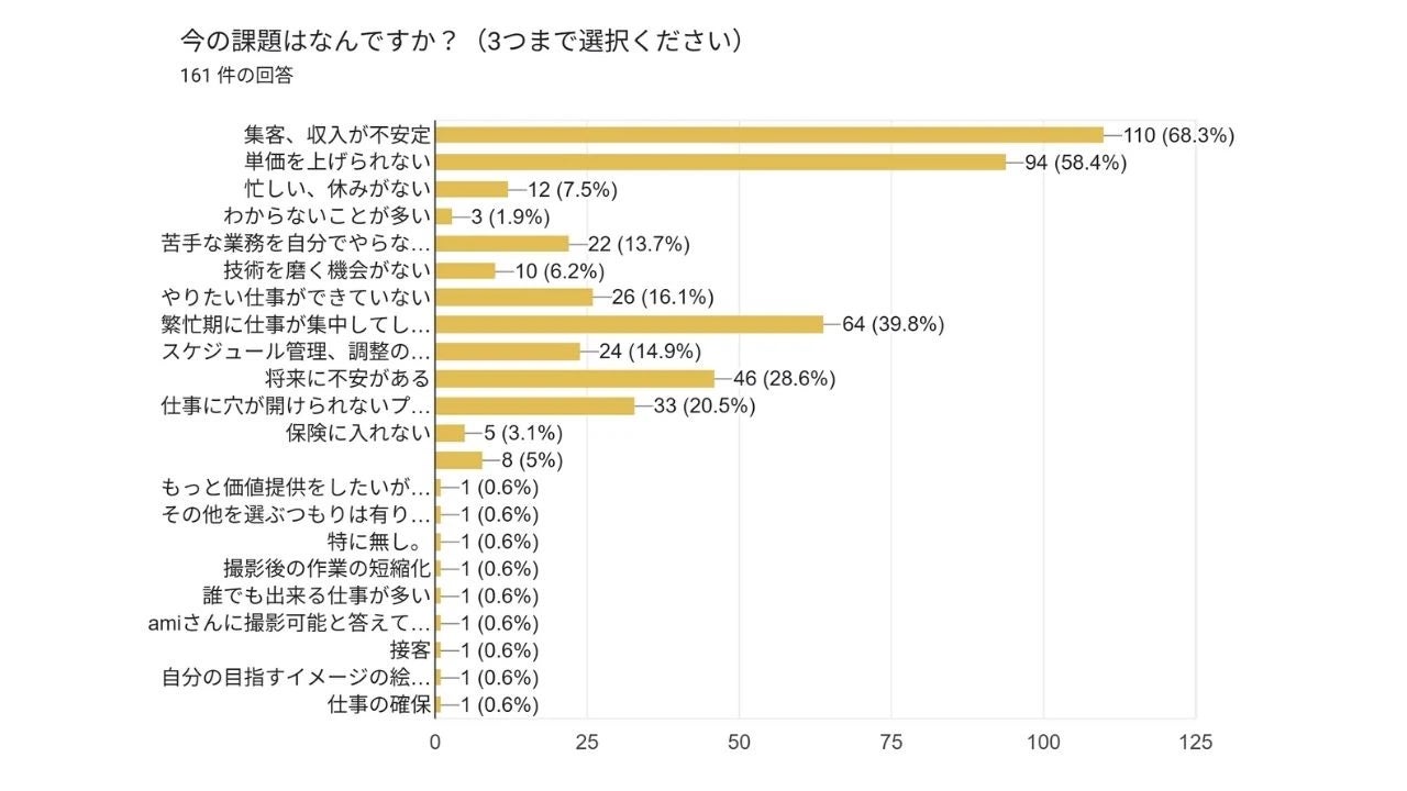 好きなことを仕事にしながらも、安定的で持続可能な働き方を模索するフォトグラファーたちのリアルな声が詰まった結果となりました。