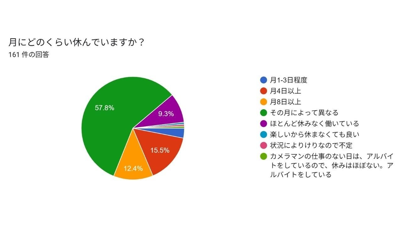 「月によって休みが異なる」フォトグラファーは57.8%(93名)と最多。