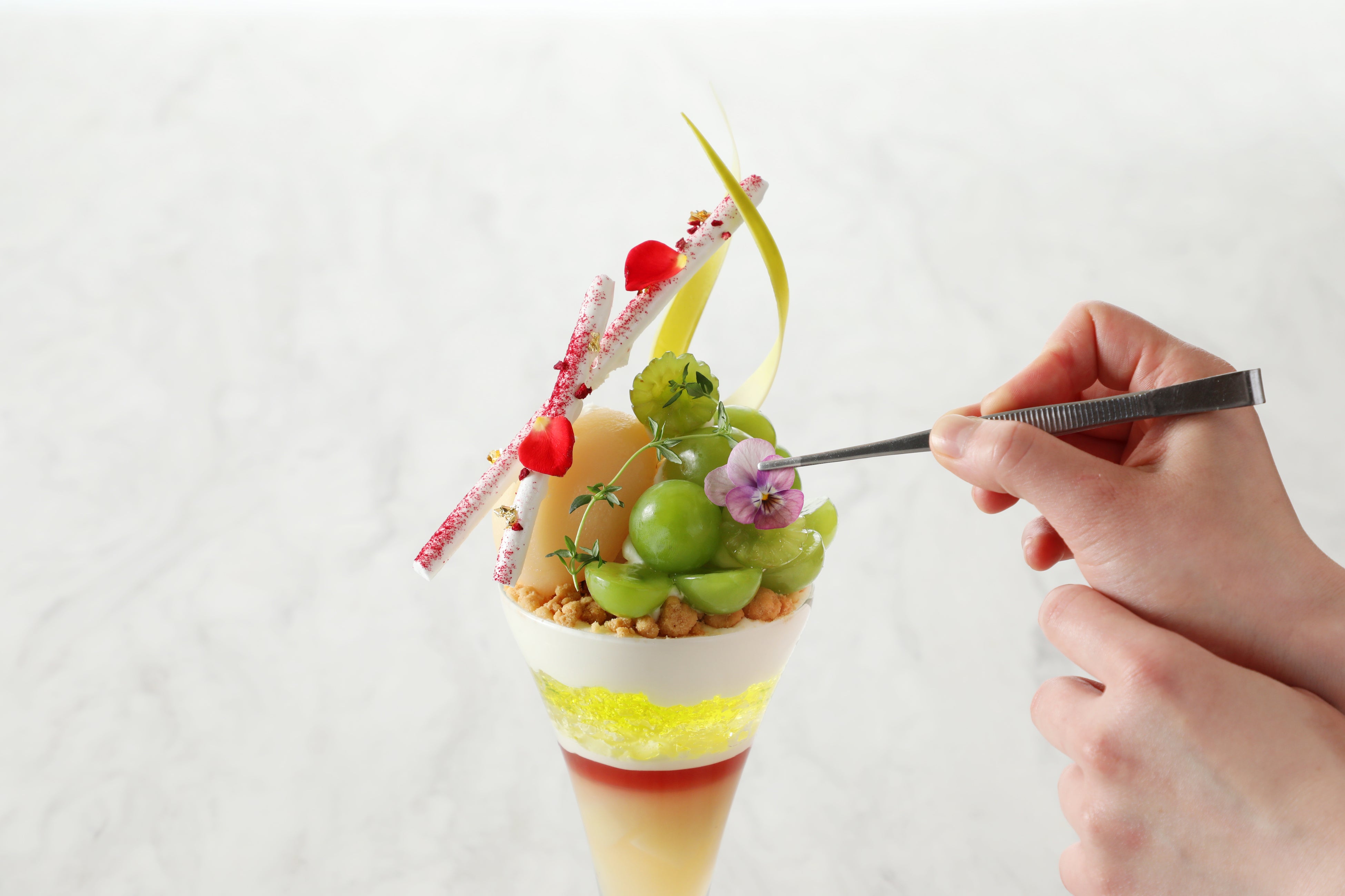 旬の果物を使った華やかなパフェやアフタヌーティーなど、季節ごとのスイーツを手がけるホテルのペストリーチーム。女性パティシエならではの繊細な感性と、素材の魅力を引き立てる技が融合し、ひとつひとつ丁寧に仕上げたスイーツが訪れる人を魅了します。味わいの調和、盛り付けの美しさ、香りのバランスまで、細部に宿るおもてなしの心をご堪能ください。