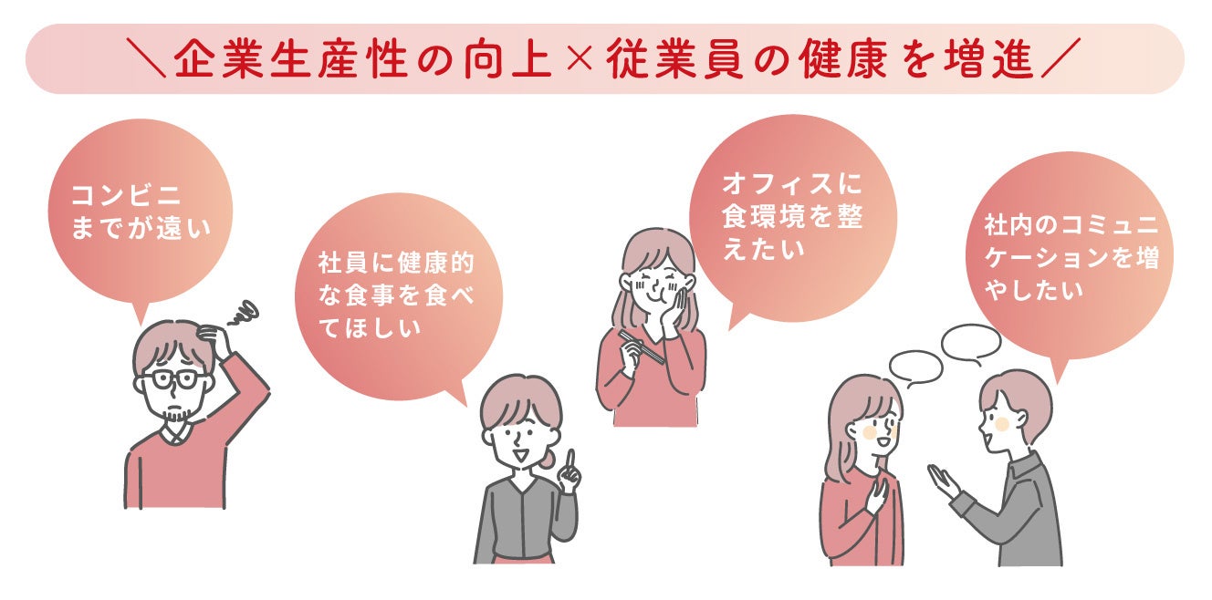 アフターコロナを迎え、オフィスへの出社人口が増えている中、食堂や売店が閉鎖されたままの職場が少なくありません。また物価上昇の影響もあり、福利厚生での食事補助など職場内の食環境(プチ社食)を整備される企業様が増えております。