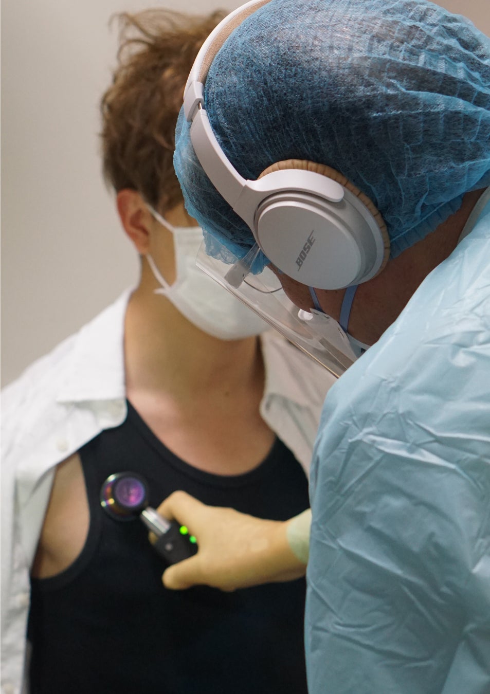 ネクステートで聴診する生体音を従来のスピーカーでモニターする際に問題となっていた、不快なハウリングの発生をフォステクス独自技術の開発で抑制し、聴診時の聞きやすさを大幅に向上しています。これにより、聴診時のイヤーピースの着脱を不要にするとともに複数人での聴診音の同時モニターも実現します。