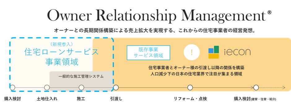 CoLife は「デジタル化が進みづらい住宅に関するあらゆる不便の解消」を目指し、住宅の新築時から引渡し、その後の維持管理、さらには住みかえといった住宅事業者と住宅オーナーの信頼ある良質な関係づくりを進める「iecon ORM(Owner Relationship Management)®︎」の発想で事業を展開。 住宅事業者と住宅オーナーの接点となる「住まいの OS」である「iecon」と、接点をいかして住宅事業者の売上拡大を支援する「ホームサービス」を提供しています。 それにより、住宅の新築時から引渡し、その後の維持管理、さらには住みかえといった住宅事業者と住宅オーナーの信頼ある