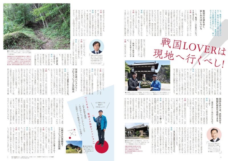 日本の城郭研究の第一人者である千田嘉博先生と、大河ドラマの時代考証も担当する、歴史学者の平山優先生のスペシャル対談を実施しました。戦国ブームの折、山城や古戦場などを訪れる人が増えている現在、歴史の舞台を歩く楽しみを知るお二人に、その極意をお聞きしました。「戦国の城」「徳川家康」など、テーマ別の対談も要注目です!