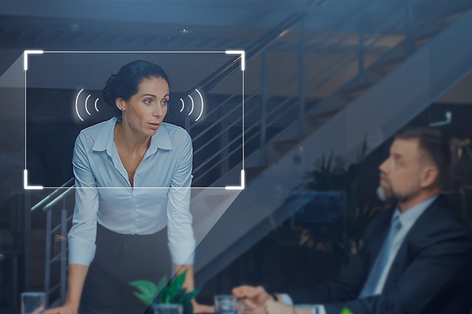 音声を検知し、自動で発言中の人物に対して、カメラのパン・チルト・ズームを行うため、カメラ位置のプリセット登録無しで自動追尾による撮影が可能です。