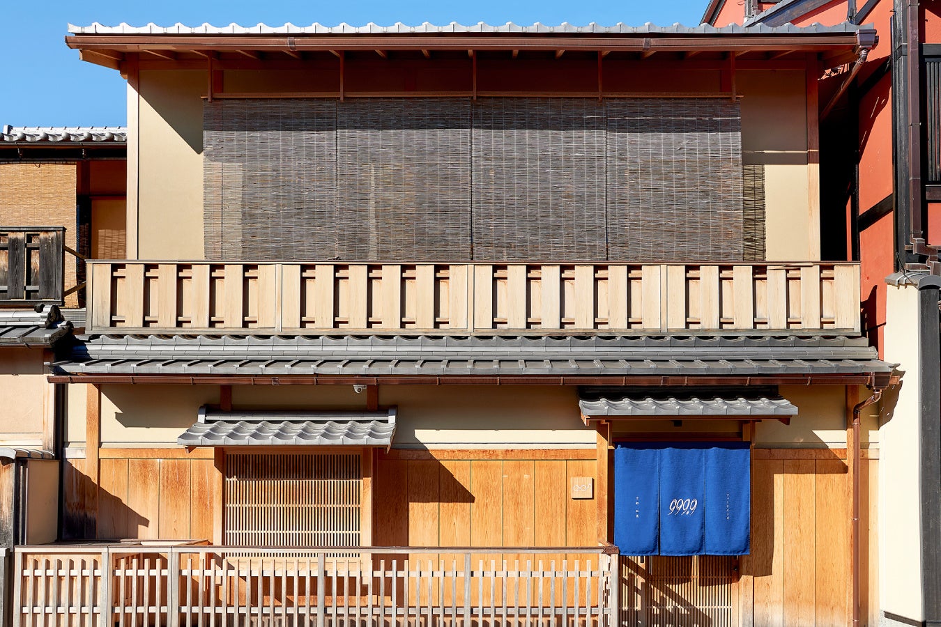 情緒ある町家の家並みと石畳みが続く花見小路に並ぶ「フォーナインズ 京都 祇園店」。