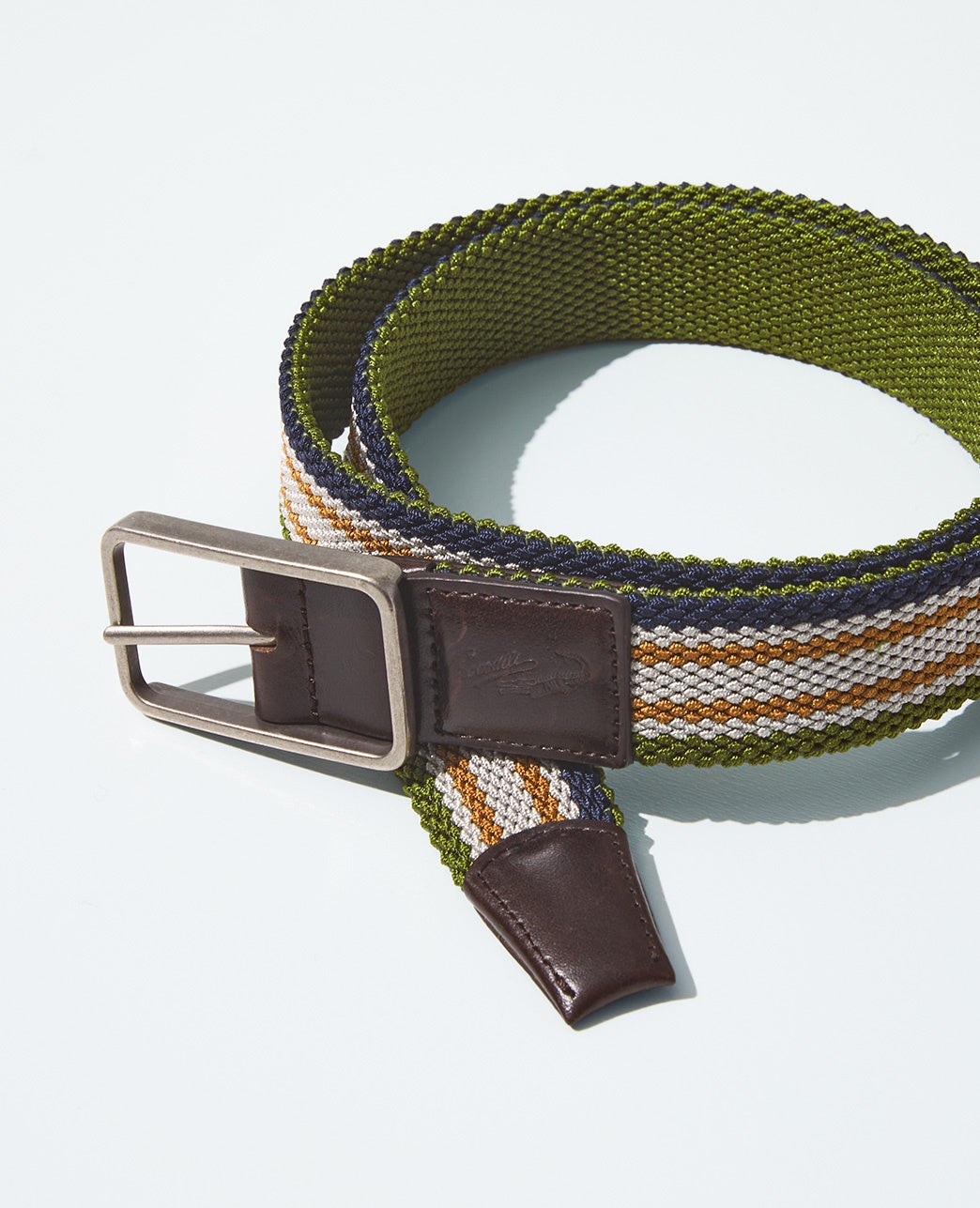 クロコダイルタータンの色合いをベースにデザインしたベルト。上品な色使いが日常の着こなしもトラッドに格上げしてくれます。