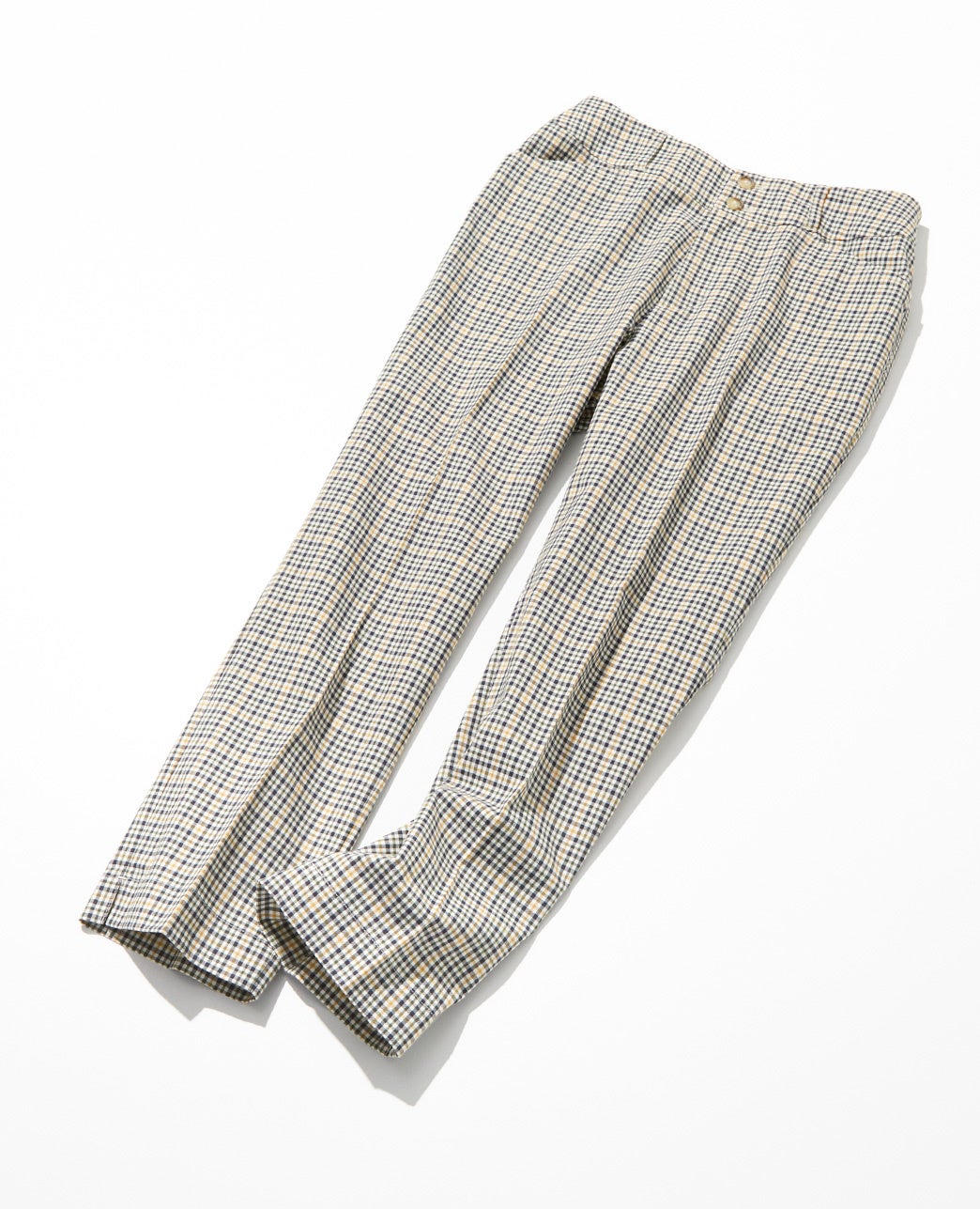 クロコダイルタータン柄がコーディネートのアクセントになるパンツ。カジュアルな中にも上品さをプラスしてくれるアイテムです。