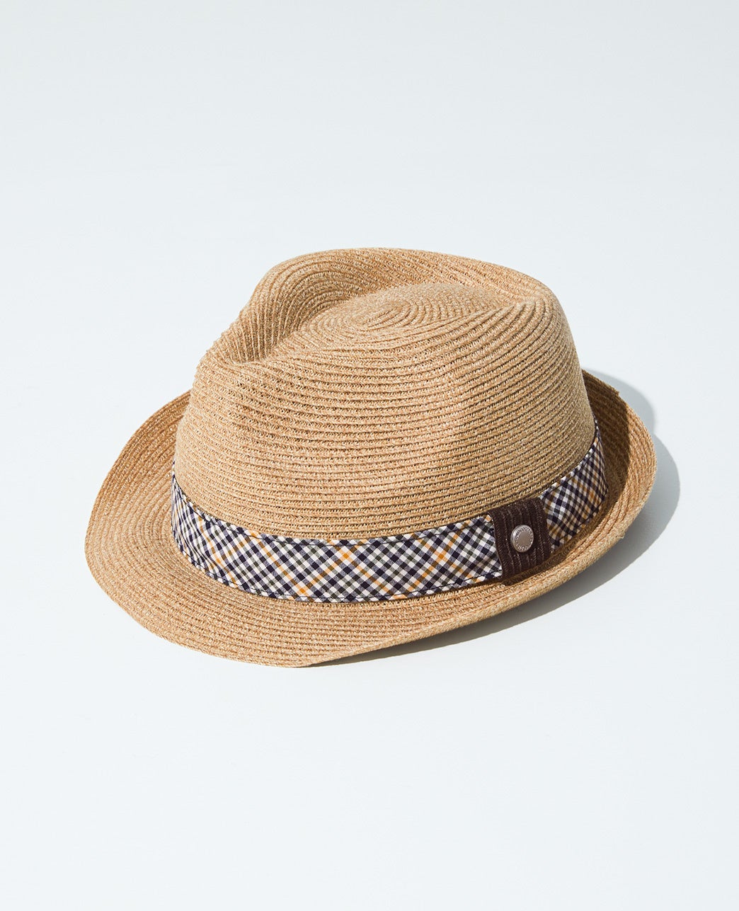 リボン部分にクロコダイルタータンを使用したサーモハット。成形加工を施すことで型崩れしにくいのが特徴。