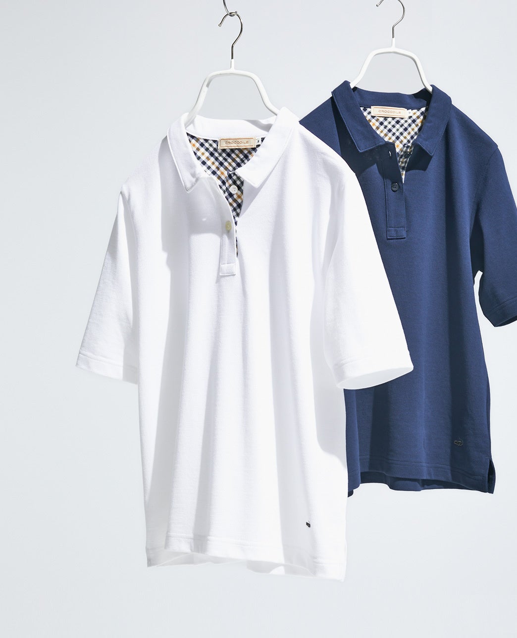 クロコダイルタータンを部分使いしたポロシャツ。襟が小さめのデザインで、スポーティになり過ぎずに女性らしい着こなしが叶います。