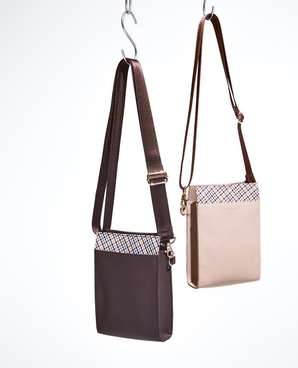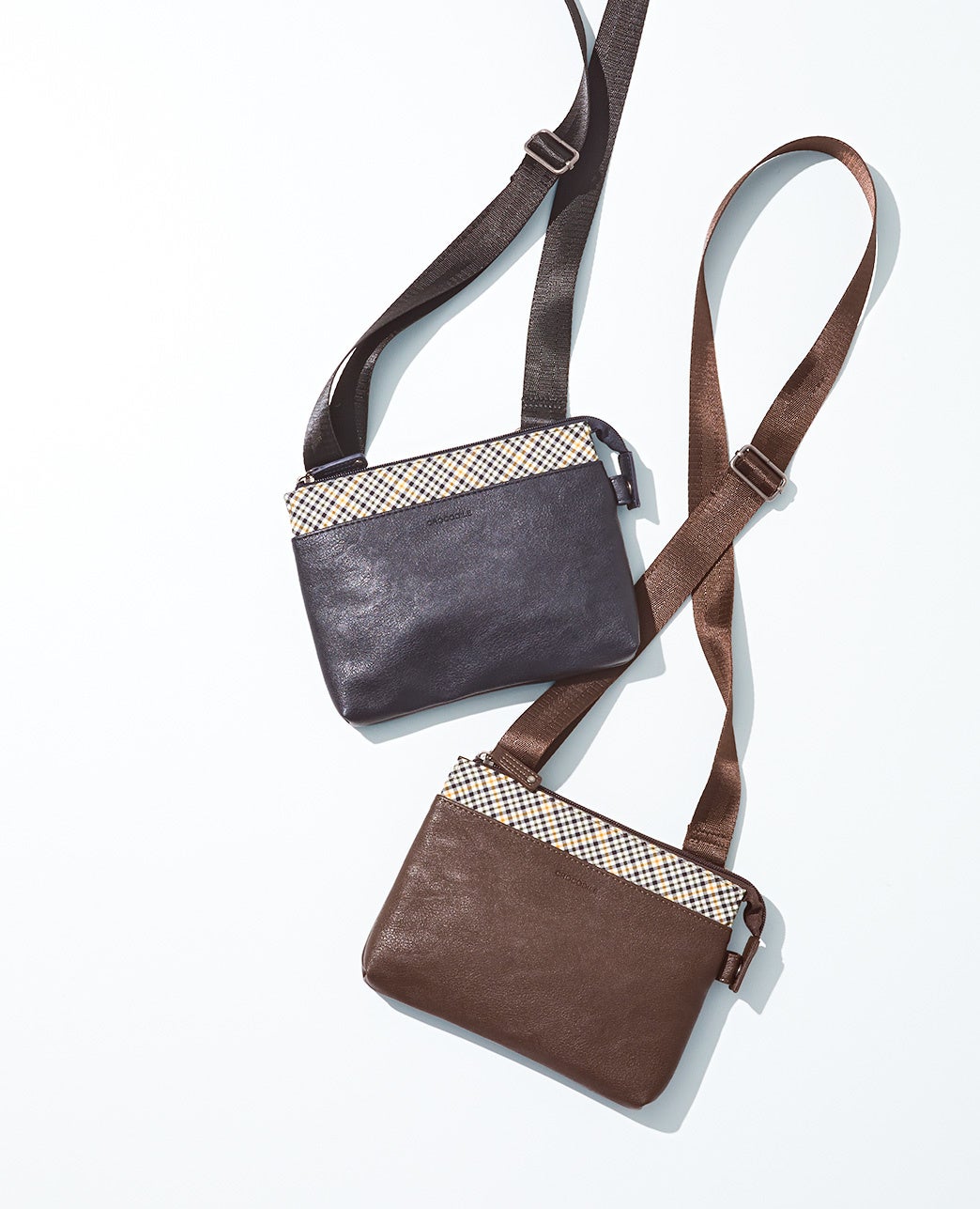 クロコダイルタータンとレザー調の組み合わせが上品なミニサコッシュ。ギフトとしてもおすすめです。