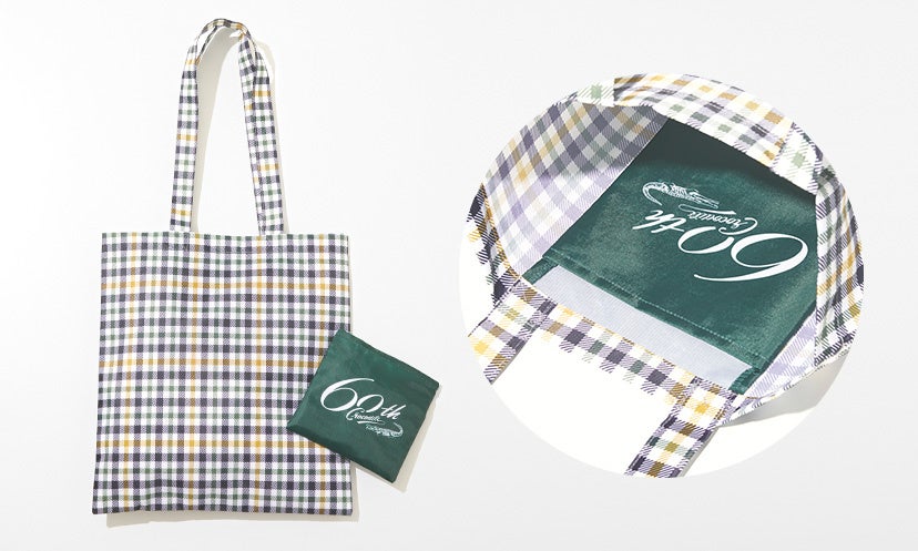 店頭やオンラインショップで¥10,000(税込)以上お買い上げのお客様に、CROCODILE60周年記念「クロコダイルタータン ポケッタブルトート」をプレゼント!