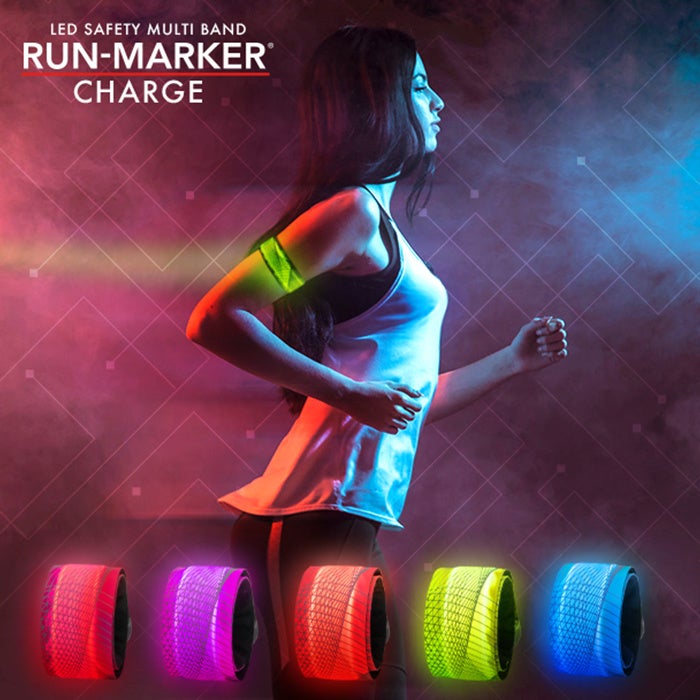 「RUN-MARKER®」は夜間にランニングやウォーキングをする人々を交通事故から守るために作られたセーフティアイテムシリーズ。「安全をおしゃれに」をコンセプトとし、用途に合わせた複数種類のアイテムから構成されています。