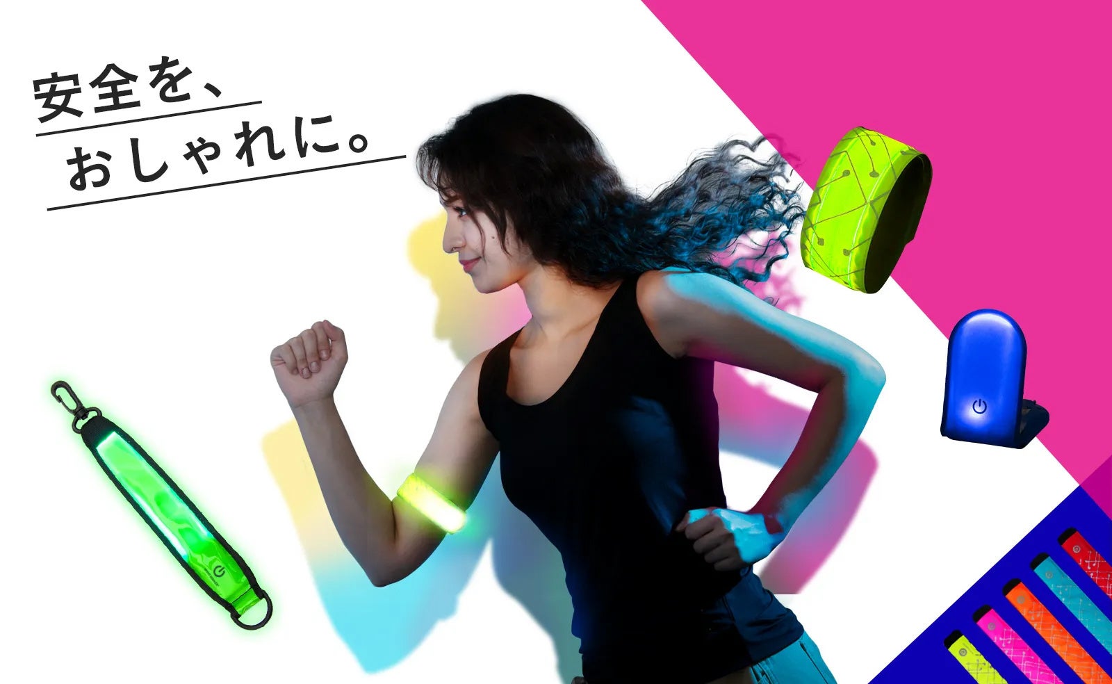 夜間のランニング、ウォーキングを中心に、通勤通学などにも使用されています。