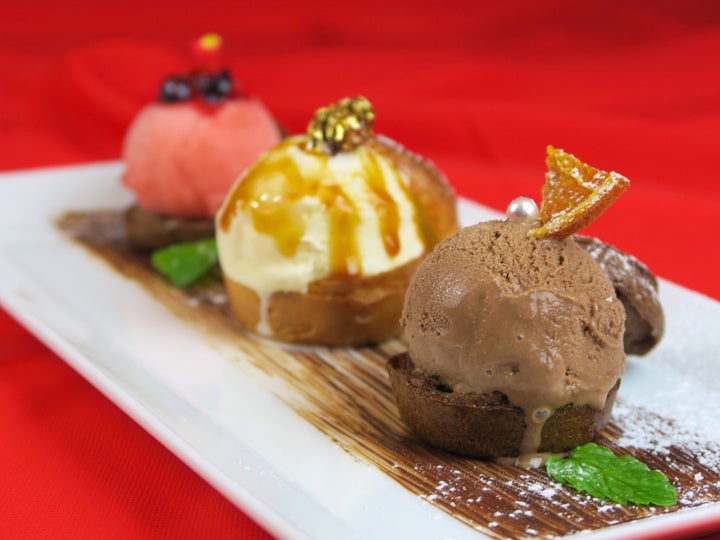 【Dessert】 ポップオーバー ナポリタンアイスクリーム (ロージー ストロベリー・キャラメルナッツバニラ・オレンジチョコレート)