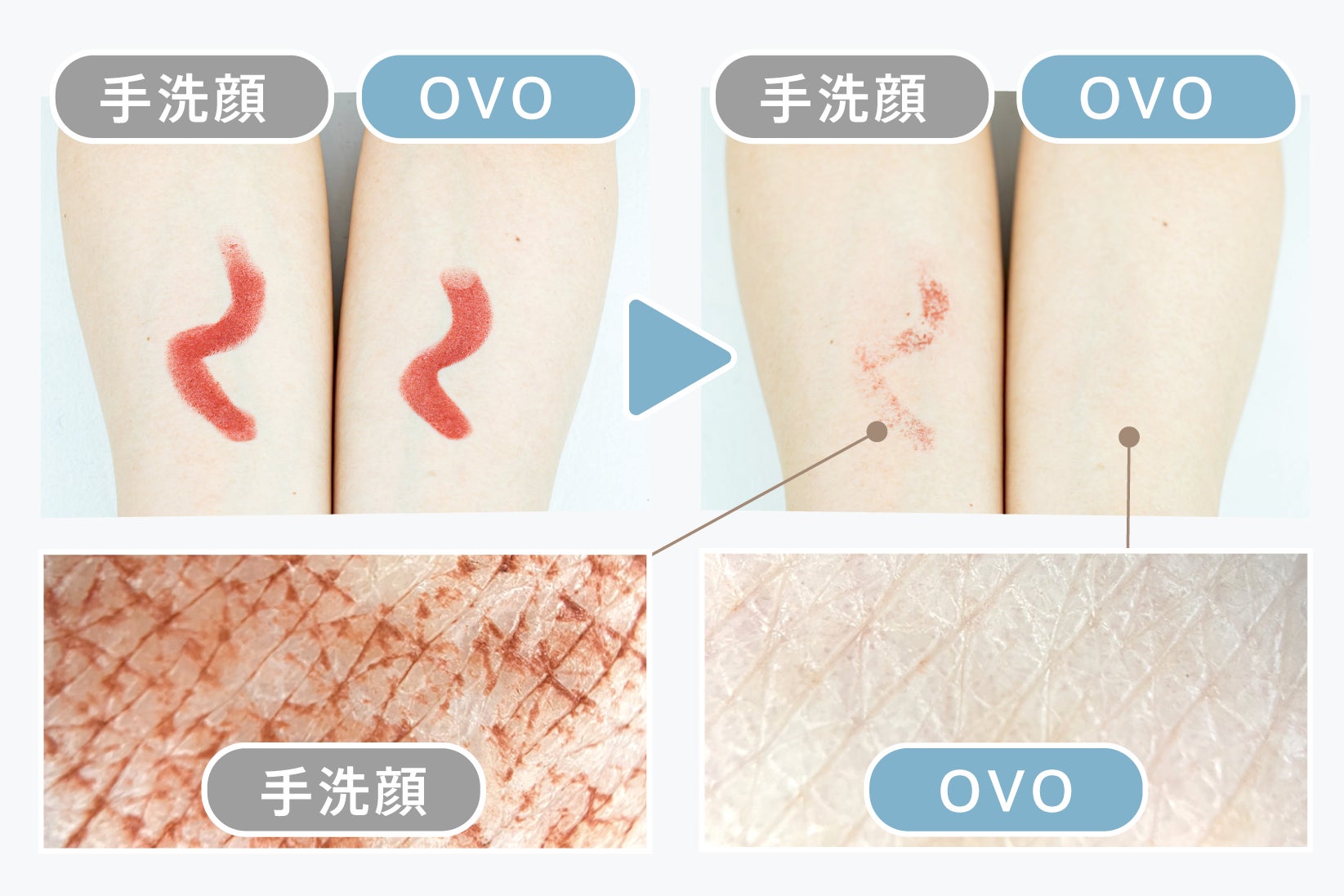 一般的な振動洗顔器は、本体内部が振動するため、振動の力が拡散され、手のひらに吸収されてしまいます。しかし、オーヴォはヘッドが独立しているため、電動歯ブラシのように先端部が独立振動します。そのため、振動の力が分散されず、ダイレクトに伝わります。