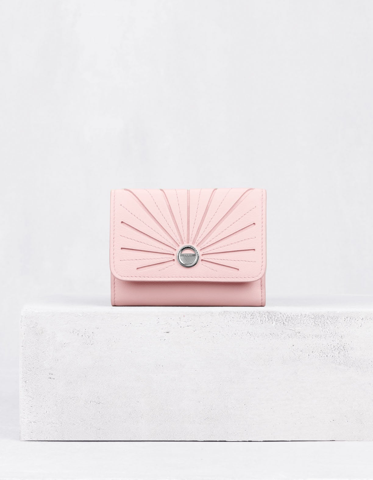 フラップにフレンチプリセのテクニックを施した、3つ折りタイプのウォレット。カードホルダーのポケット、コインケースなどコンパクトにまとまった機能が充実しているのみではなく、柔らかな感触と色使いで、使うたびにハッピーな気持ちに。