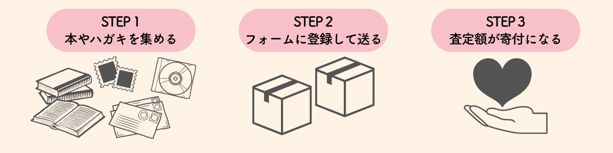 ●送っていただけるもの:本、DVD、ゲームソフト、未使用切手、ハガキ、金券類など
