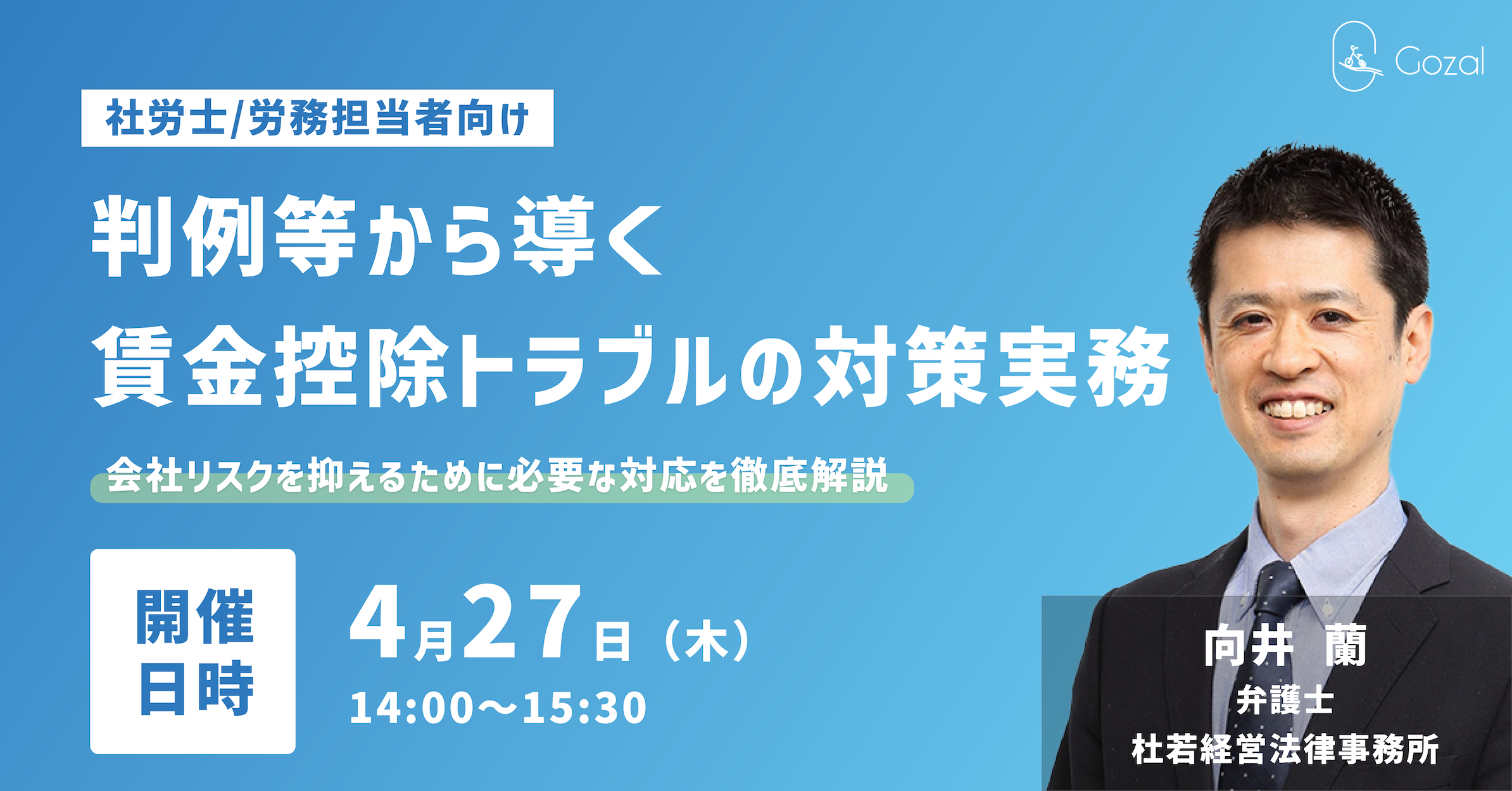 【社会保険労務士/労務担当者の方向けオンラインウェビナー】判例等から導く賃金控除トラブルの対策実務