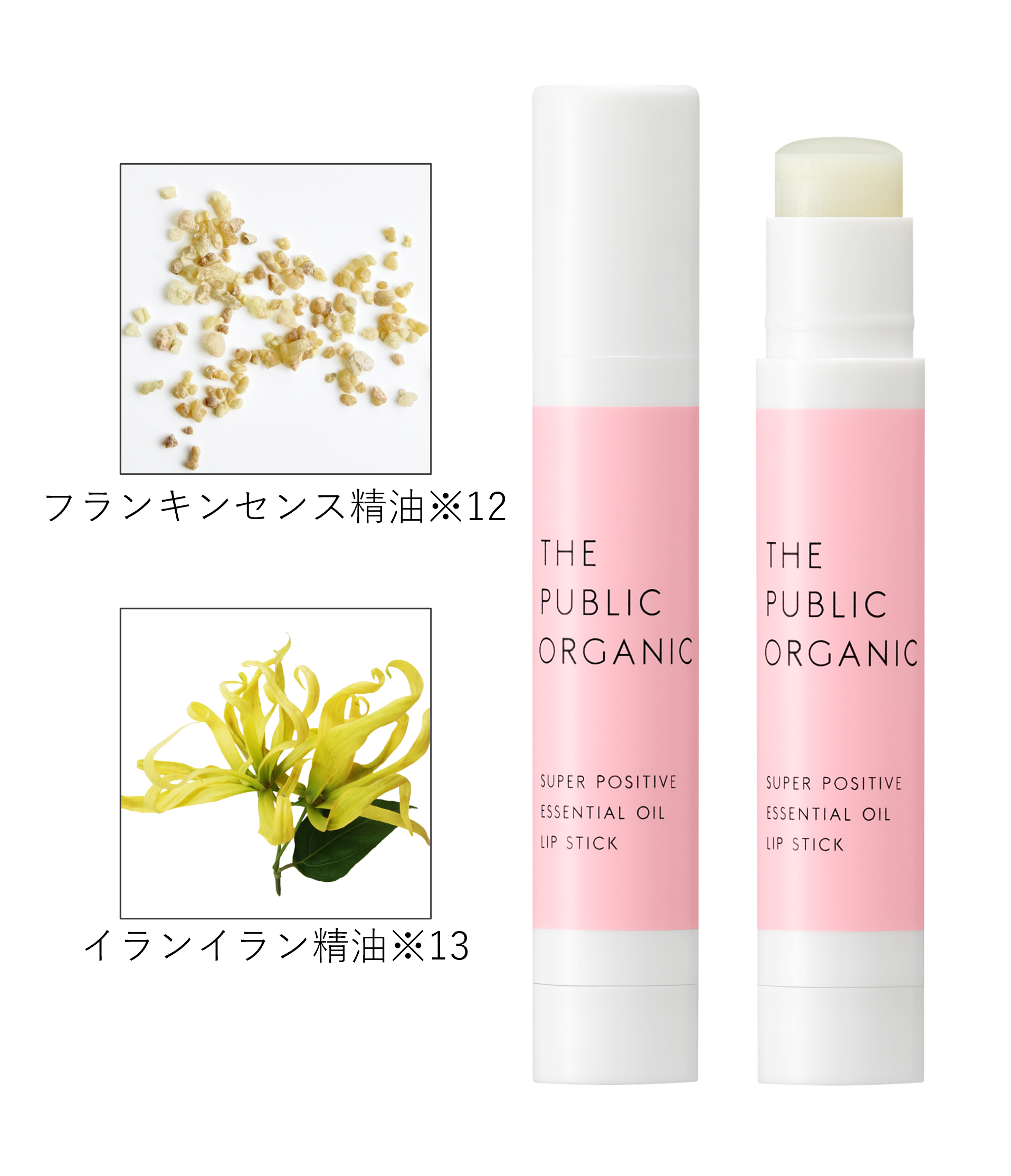 ※1 プルーン種子油(保湿成分) ※2 ブドウ種子油(保湿成分) ※3 プランクトンエキス(保湿成分) ※4 シア脂(保湿成分) ※5 当社従来品「ザ パブリック オーガニック スーパーポジティブ 精油リップスティック」と比較 ※6 酸化チタン(着色成分) ※7 酸化鉄(着色成分) ※8 マンガンバイオレット(着色成分)(フリーリーブラウンを除く) ※9 ホホバ種子油(保湿成分) ※10 ベルガモット果実油(着香・皮膚コンディショニング成分) ※11 ギンコウボク花油(着香・皮膚コンディショニング成分) ※12 ニュウコウジュ油(着香・保湿成分) ※13 イランイラン花油(着香・皮膚コンディショニング成分) ※14 マンダリンオレンジ果皮油(着香・皮膚コンディショニング成分) ※15 ニオイテンジクアオイ油(着香・保湿成分) ※16 2021年9月24日調べ リップクリーム・リップバーム部門(Amazon及びこれらに関連する全ての商標は、Amazon.com, Inc. 又はその関連会社の商標です) ※17 ビターオレンジ花油(着香・皮膚コンディショニング成分)