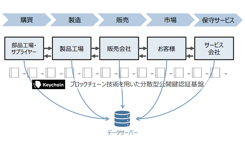 製品ライフサイクル全般にわたり多数のステークホルダーが存在する機械製品サプライチェーンに対し、Trusted Webの仕組みや考え方を援用する企画検討をおこない、基本的なコンセプトの検証をおこないます。プロトタイプの開発は実際の現場利用も想定して、IoTデバイスやスマートフォーン上で動作できるもの検討されます。ブロックチェーン開発基盤であるKeychain Coreを活用してTsusted Webの構成要件の実現を実装計画されています。