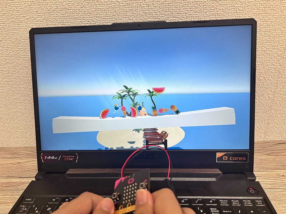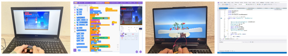 ScratchまたはUnityでゲームプログラミングを行い、micro:bit(マイコン)にもゲームコントローラとしてプログラミングしてプレイするコースです。