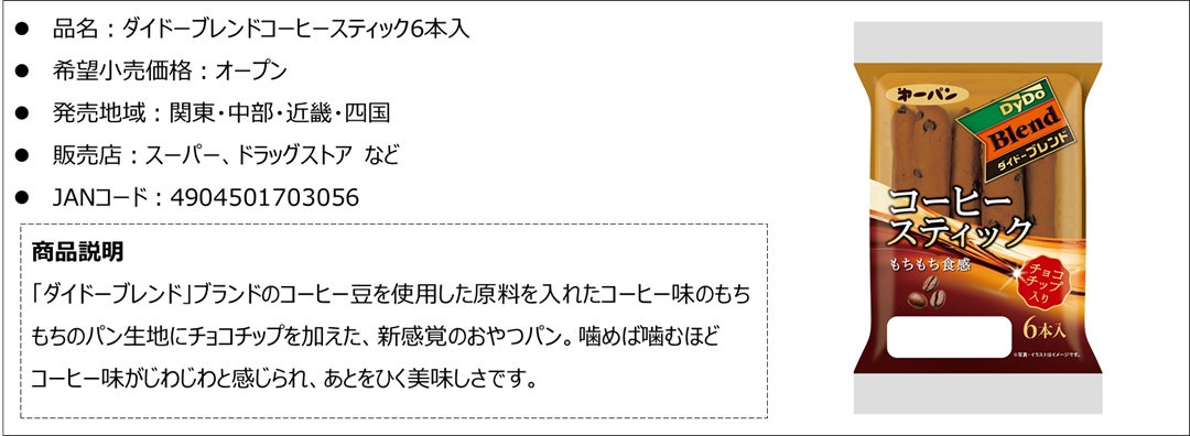2014年9月から共同開発を開始し、「パン」と「コーヒー」の相性の良さから毎年多くのお客様にご好評をいただいております。9年目を迎えた今年も、こだわりのブレンドによるコーヒーの多種多様な美味しさを追求し続ける「ダイドーブレンド」ブランドのコーヒー豆を使用した原料を加えることで、コーヒーの香ばしい香りを楽しんでいただけるよう仕上げました。