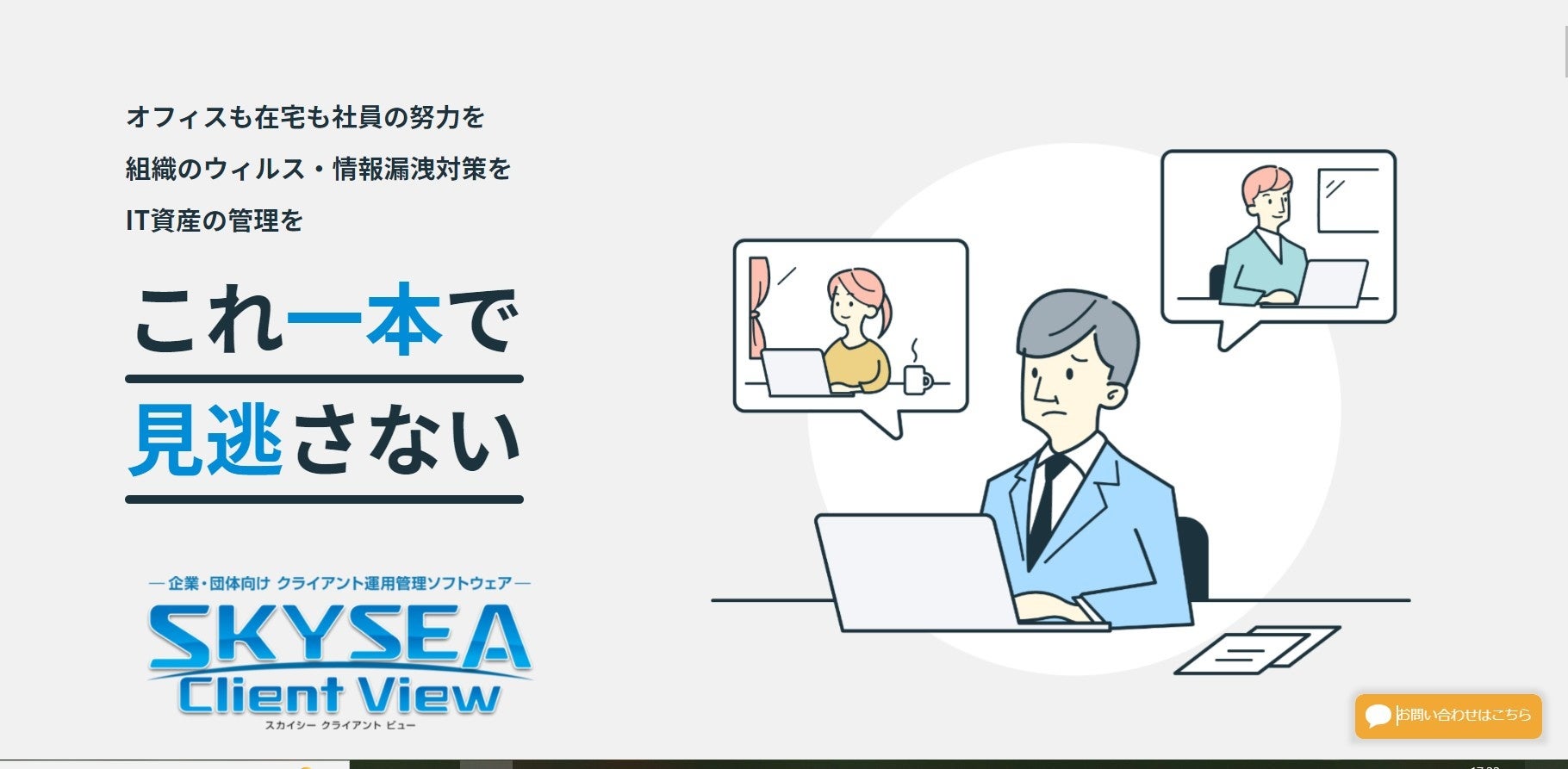 「SKYSEA Client View」は情報漏洩対策とIT資産運用に必要な機能を搭載し、幅広いIT機器・ソフトウェアの安全な運用を支援するクライアント運用管理ソフトウェアです。激しさを増すサイバー攻撃への対策や、テレワークにおける従業員の業務状況の「見える化」などにもご活用いただける本製品は、多くの企業からのご支持をいただき、現在18,000を超えるユーザーにご利用いただいています。