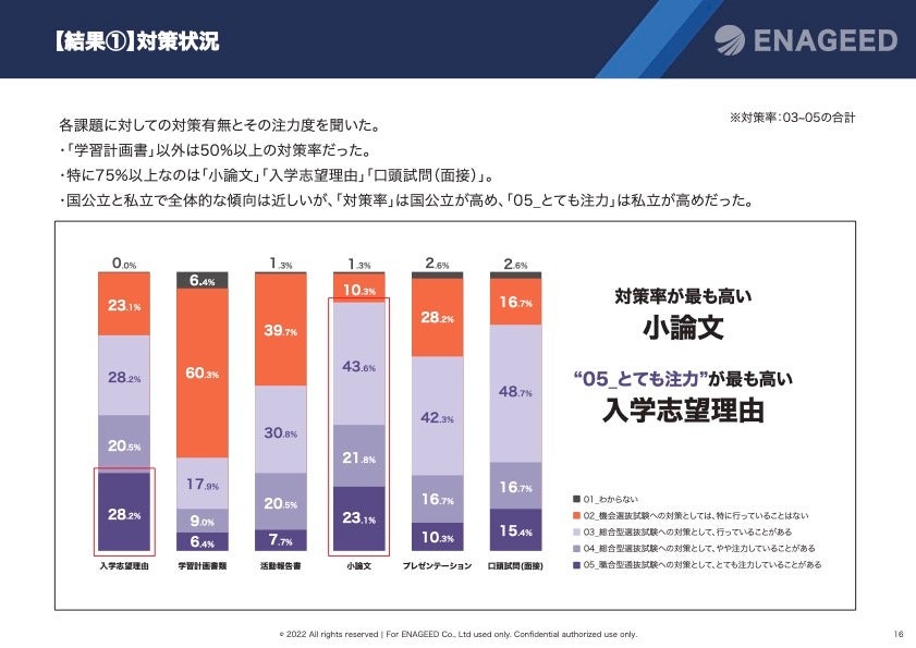 弊社では、2022年9月に総合型選抜試験の各課題についての各校の対策状況について、全国78校に調査を行いました。