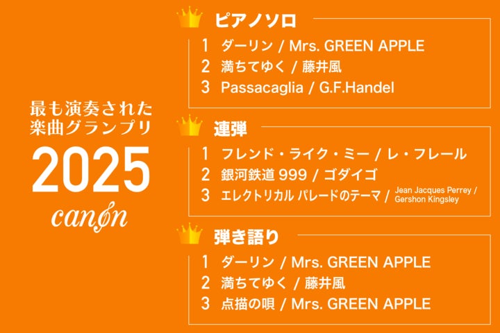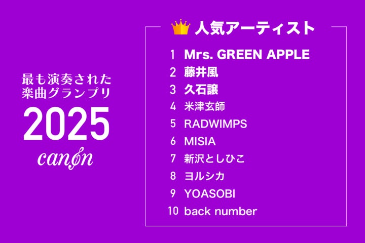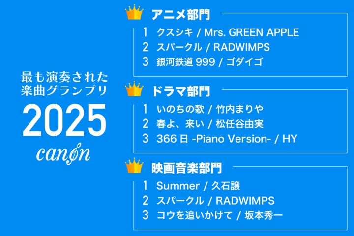 電子楽譜カノン"最も演奏された楽曲グランプリ2025"を発表