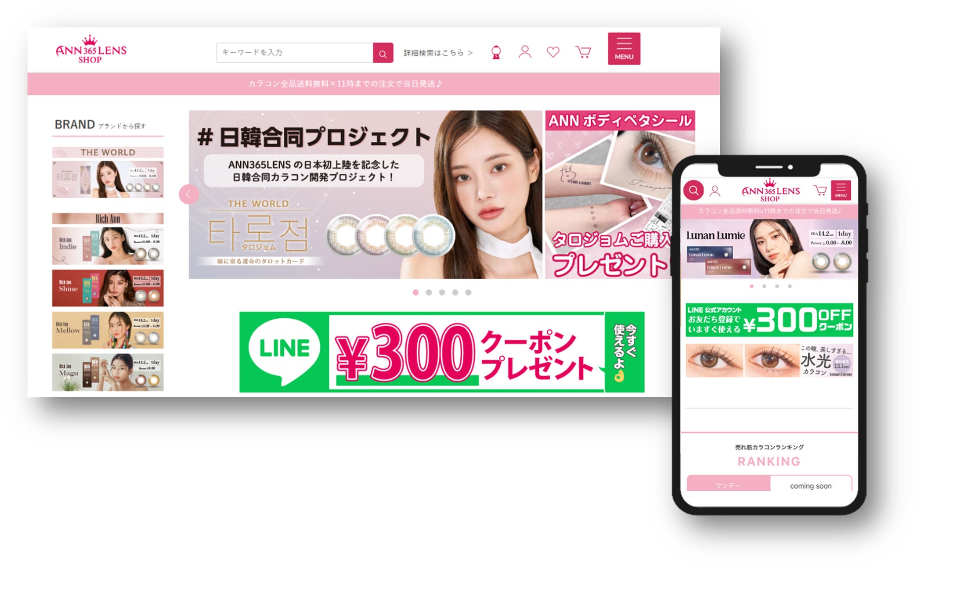 コンタクトを製造販売するアイレが【日本初上陸】韓国発カラコンブランドANN365LENSの日本向け通販サイトをオープン!CRM機能一体型の「メルカート」を採用