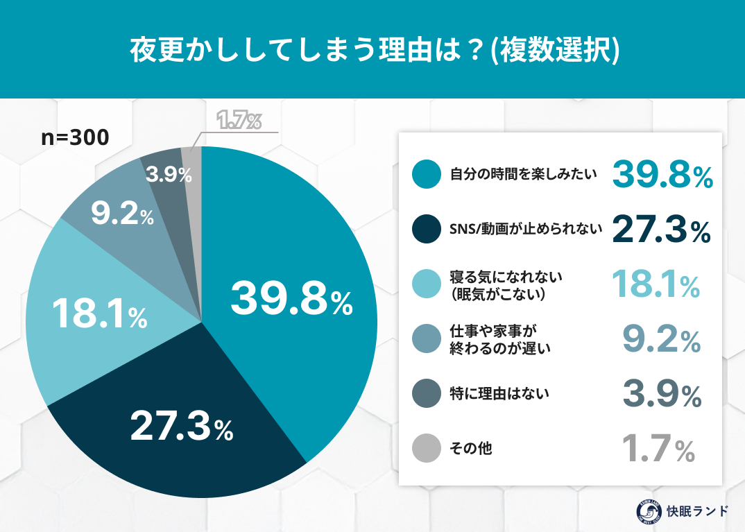夜更かし理由1位:「自分の時間を楽しみたい」(39.8%)
