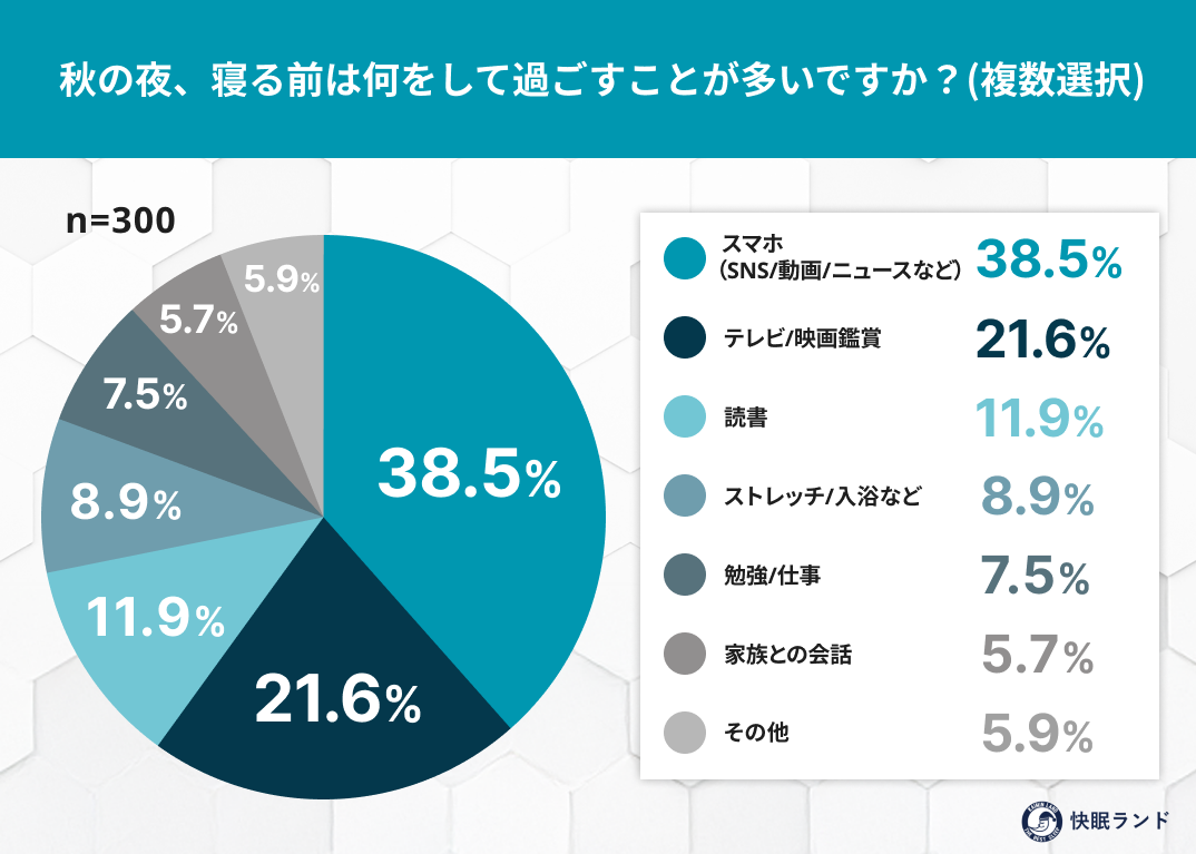 寝る前の過ごし方1位は「スマホ」(38.5%)