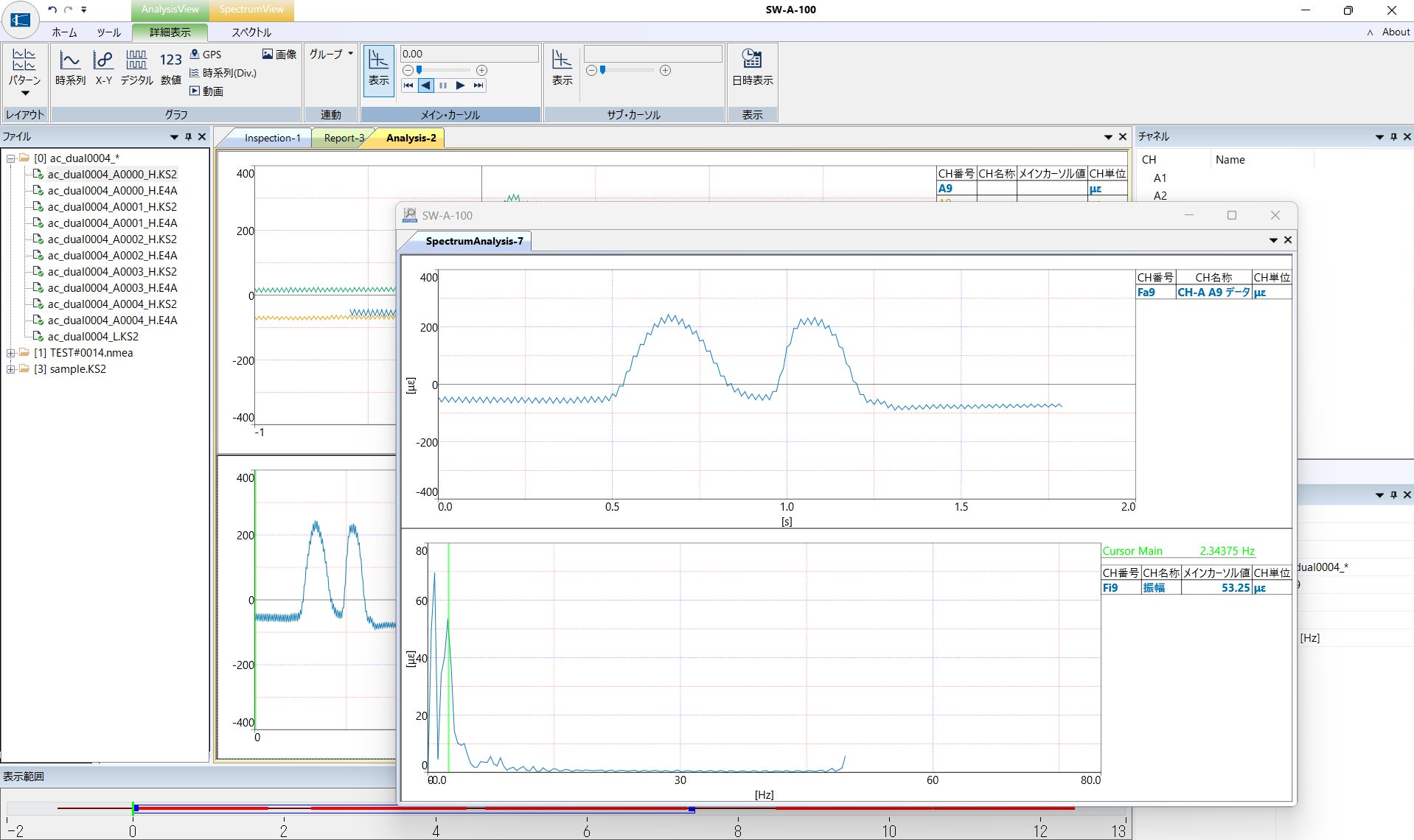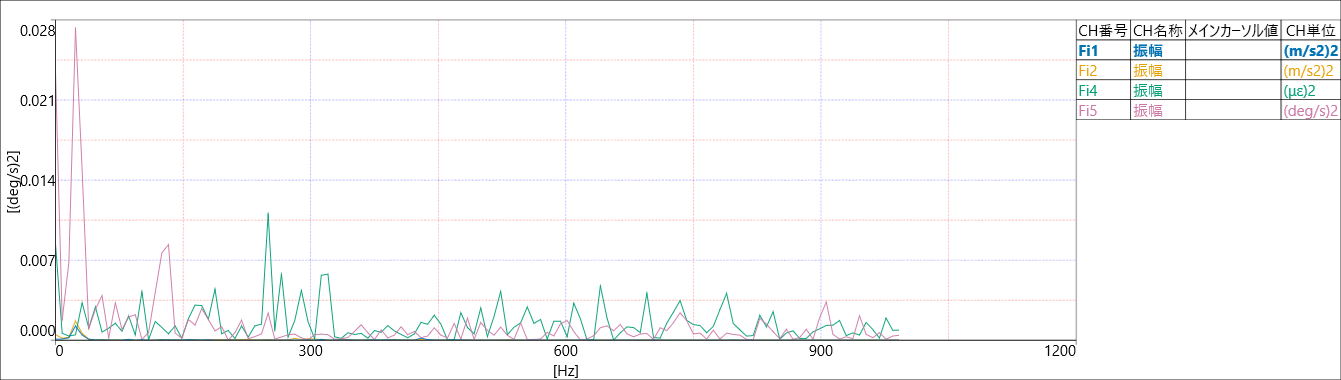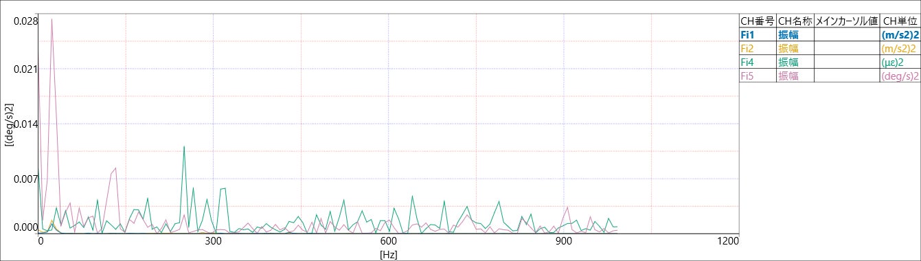 効率的な比較解析: 複数チャネルのスペクトル解析結果を同一グラフ上に表示し、周波数特性を効率的に比較・確認できます。