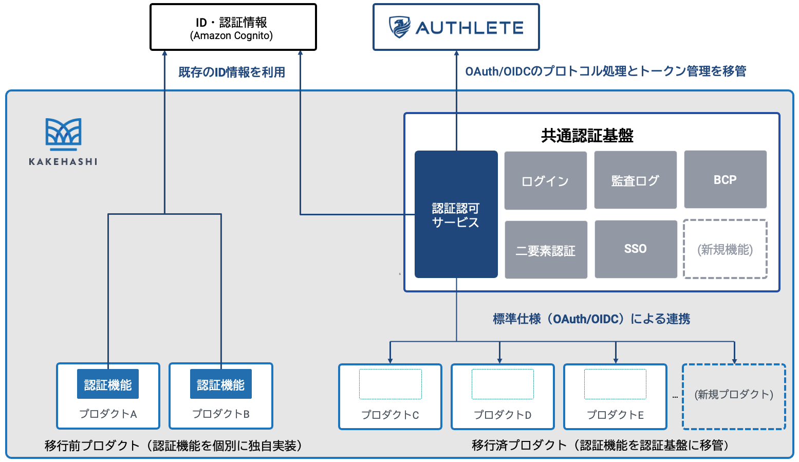 Authleteを活用した共通認証基盤は、2025年の7月から稼働しています。カケハシは、マルチプロダクトにおける認証機能を共通基盤化し、共通認証基盤のOAuth/OIDCプロトコル処理とトークン管理をAuthleteに移管することで、高い可用性とセキュリティ要件を満たすとともに、開発効率を向上させることができました。その一方で、既存のID・認証情報を管理するAmazon Cognitoの利用を維持したことで、既存プロダクトの段階的な移行を実現することが可能になりました。