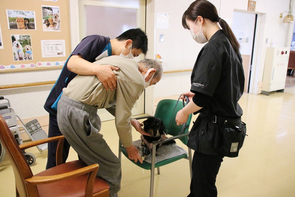 社会医療法人清風會介護老人保健施設おとなの学校岡山校では、ドッグセラピストとリハビリスタッフが協働し、セラピードッグが介入したリハビリプログラムを展開しています。癒しだけでなく、セラピードッグを介入させた身体的なリハビリにより、利用者のモチベーション向上や身体機能の改善を同時に目指す、全国的にも珍しい取り組みを行っています。