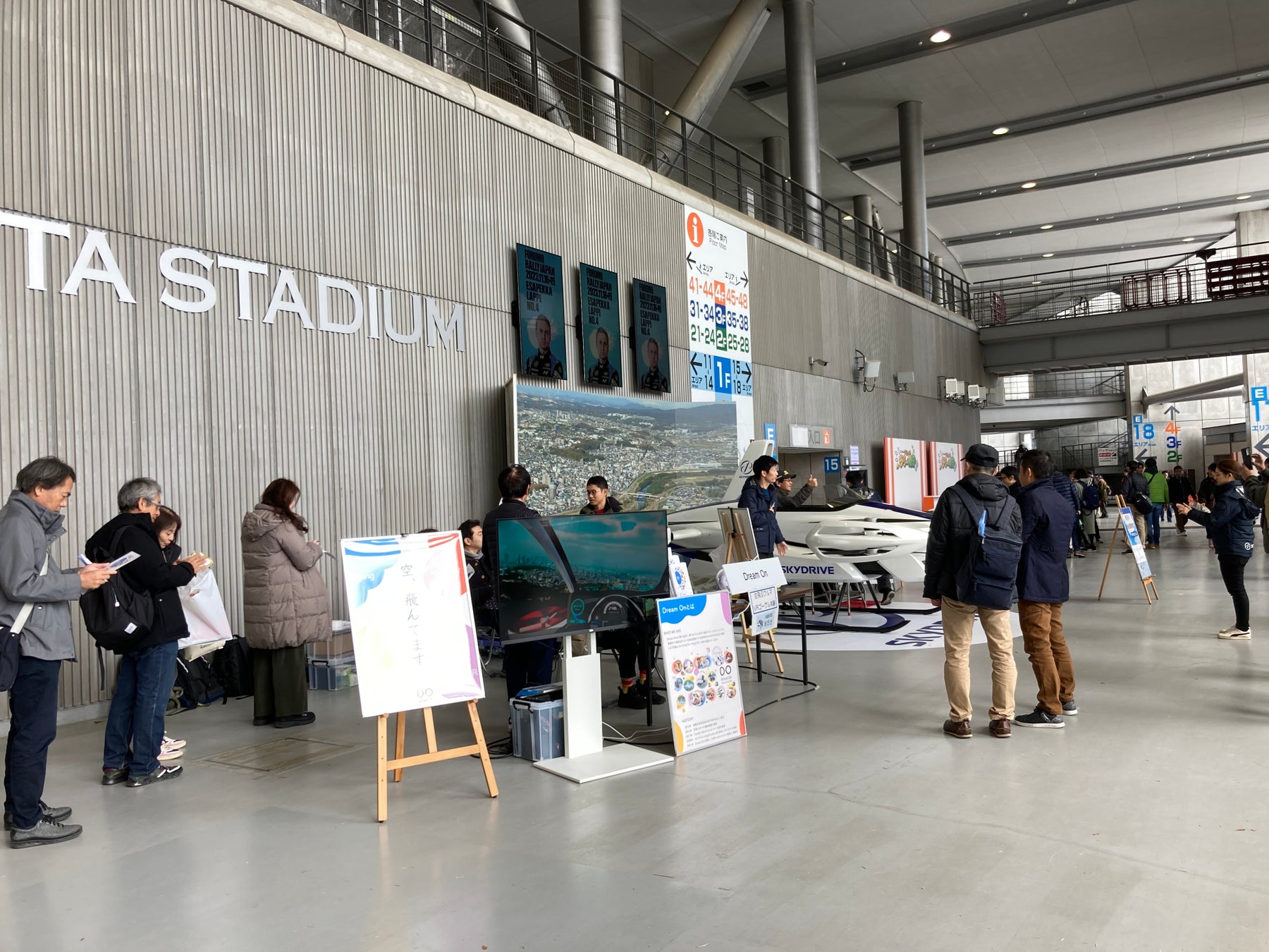 株式会社SkyDriveによる空飛ぶクルマの展示機、有志団体Dream Onによる空飛ぶクルマのVRシミュレーターと並んで、世界中から来られる方々にお披露目をします。