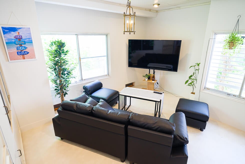 サーフスポット茅ヶ崎はもともと空き家でした。リノベーションによって白を基調とした内装に変え、おしゃれに改修しています。