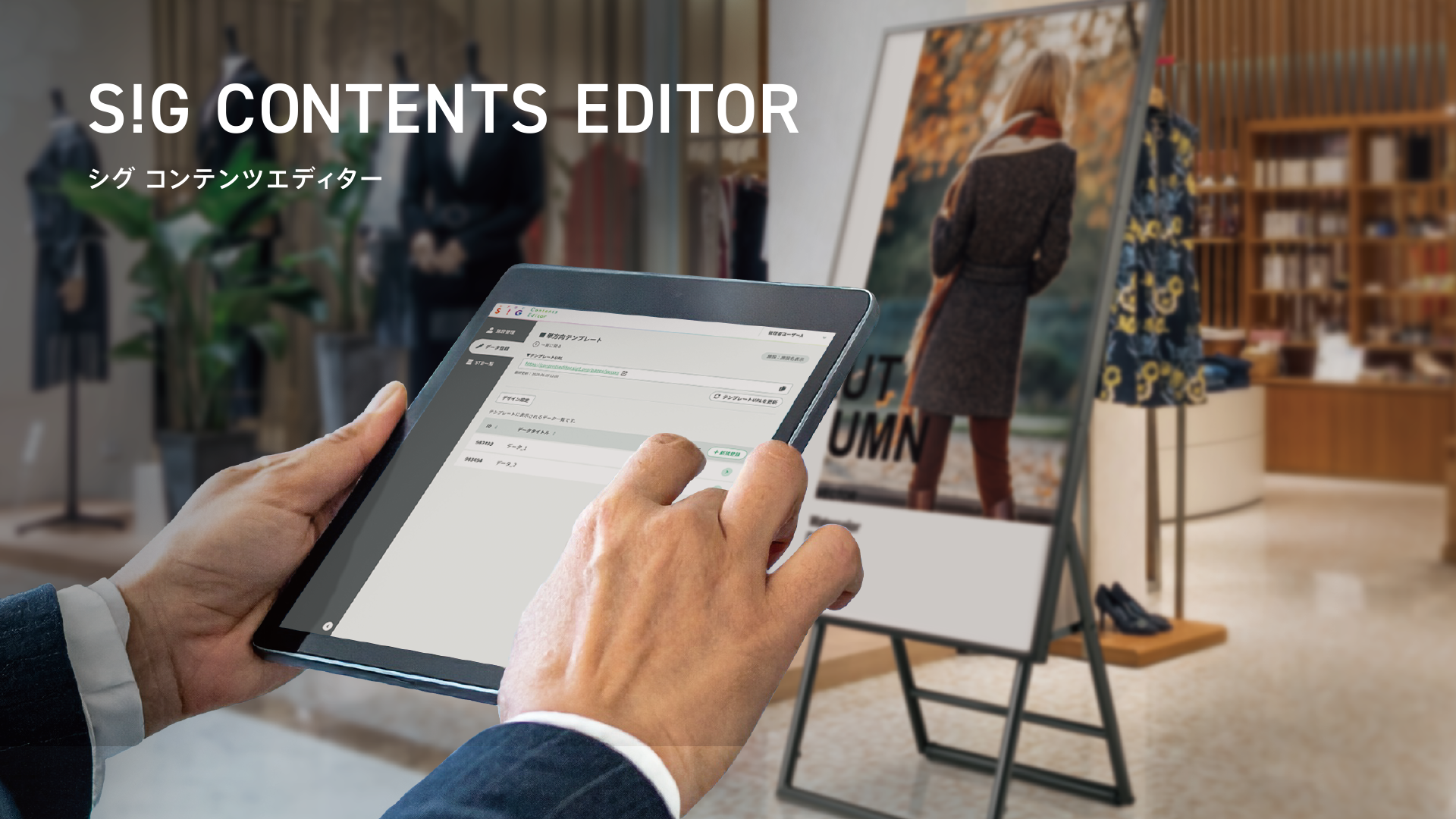 クラウド型サイネージ配信CMS「SiG(シグ)」は、直感的な操作性を備え、インターネット環境があれば場所を問わず、動画や静止画、HTMLなどのWEBコンテンツの更新・管理ができる点が大きな特長で、複数拠点や多数のディスプレイを一括で制御しながら、常に最新情報を配信することが可能です。