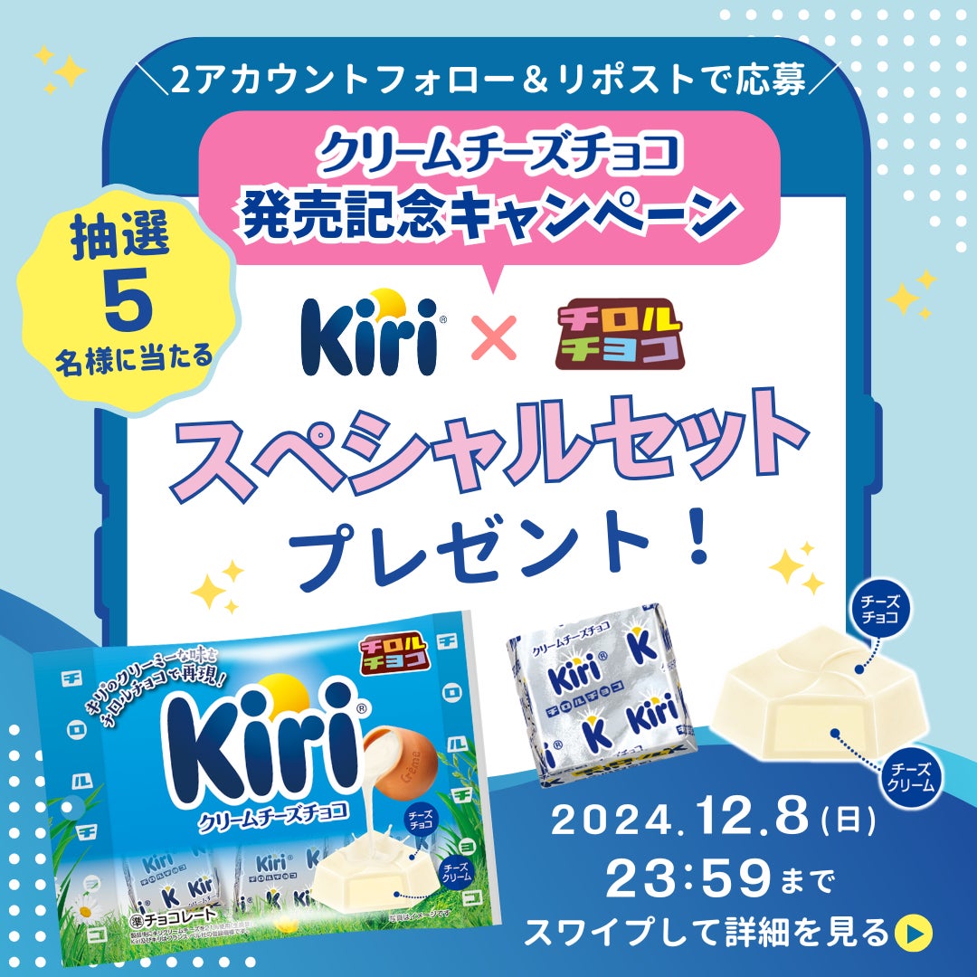 日本に上陸して40年を超えた「キリ」は、子どもから大人まで多くの方々に愛されてきました。「キリ」の変わらないおいしさをもっと多くの人にお届けするために、おいしさの幅を広げるチャレンジを続けています。そんな、フランスを代表するクリームチーズブランド「キリ」は、「チロルチョコ」とコラボレーションし、「クリームチーズチョコ〈袋〉」を期間限定で発売いたします。爽やかな酸味とまろやかなコクを楽しめるように、チーズチョコとチーズクリームに「キリ」のパウダーをブレンドしました。また、過去の販売時には「ミニチュアみたい」 「かわいい」と多くのお客様から好評をいただいた個包装デザインは、同様にチーズが包まれているアルミの包み紙をリアルに再現しました。大人気コラボの復活を、ぜひお楽しみください。