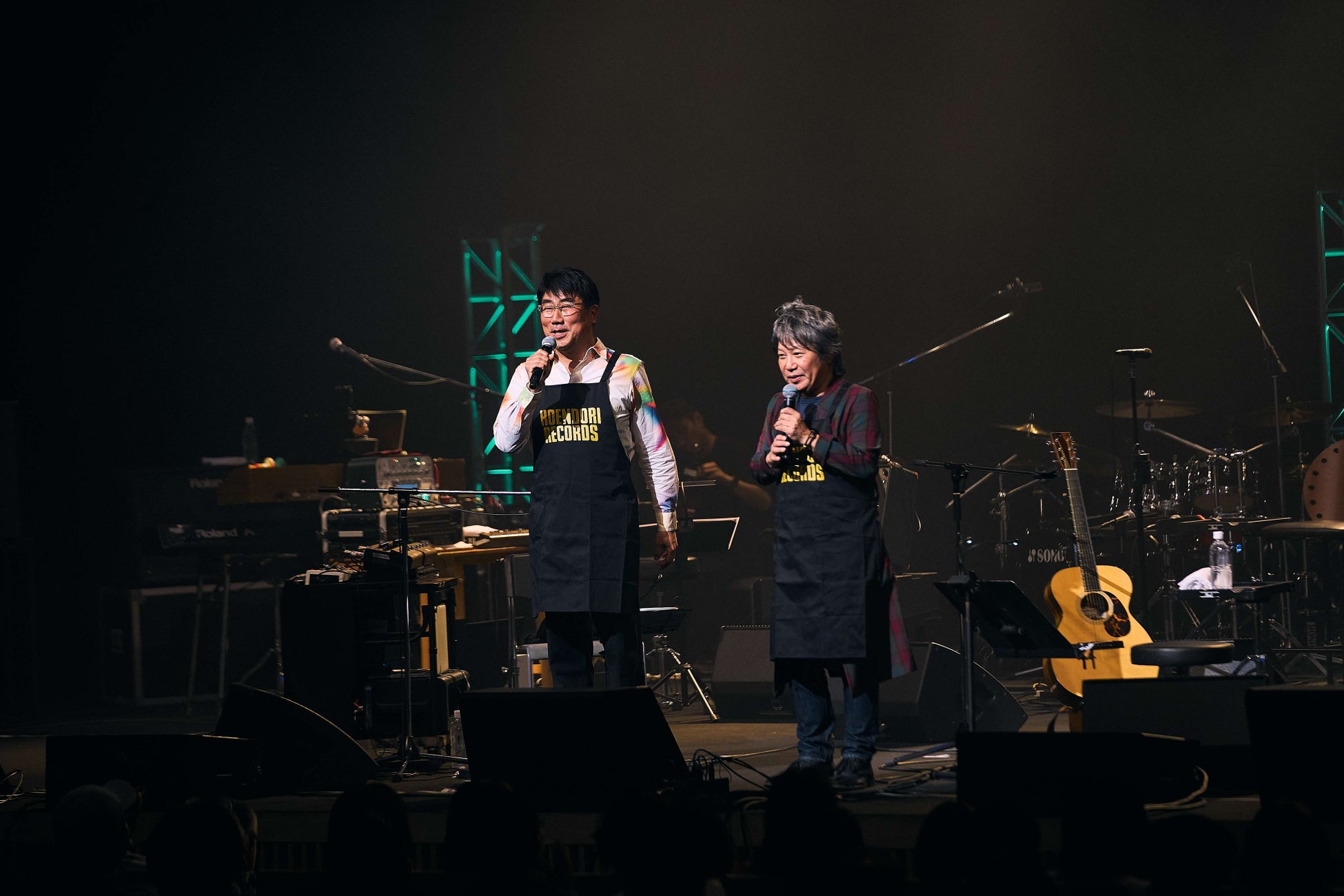 レコードショップが多く点在する街 “渋谷” にちなんだ本公演を「公園通りレコード インストアライブ」と命名し、エプロンを着用し、ショップ店員に扮した佐橋佳幸、亀田誠治がそれぞれ店長、副店長という肩書のもと、ゆかりのアーティストと“歌い続けていきたい歌”を奏でるこの日限りのコラボレーションを開催しました。